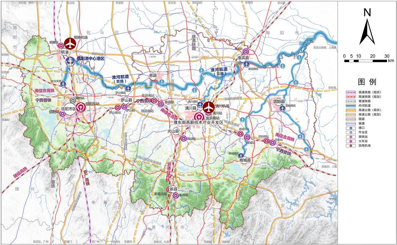 批了,新枢纽来了! 从刚刚举行过的信阳市高质量完成“十四五”规划系列主题新闻发布会上了解到,南信合高铁、京港高铁可研通过评审,信阳潢川机场预可研获批。如果再加上潢川花埠港、沿淮高铁、濮潢高铁,豫东南高新区的综合交通优势将再一次提升。 大家对河南这个新枢纽高地、产业高地怎么看,底部留言区一起来聊聊吧!