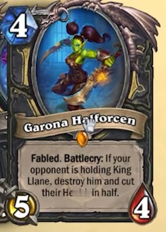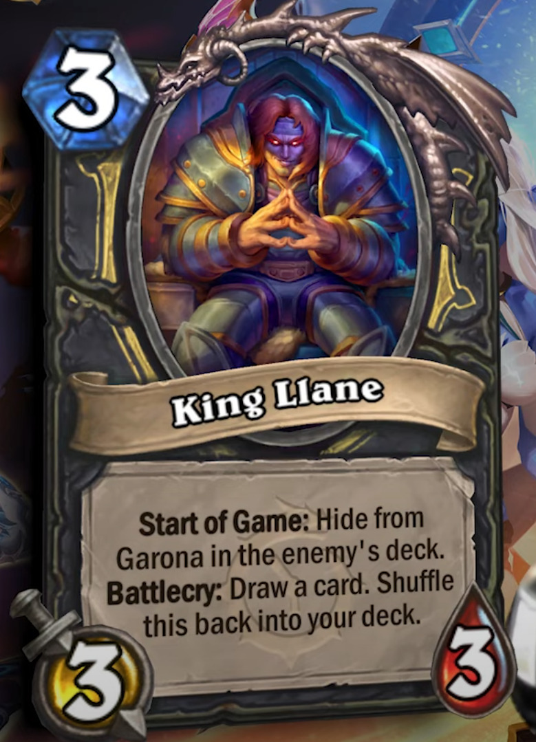 奇闻。战吼:如果你的对手的手牌中有King Llane,将其摧毁并使对手的生命值减半。