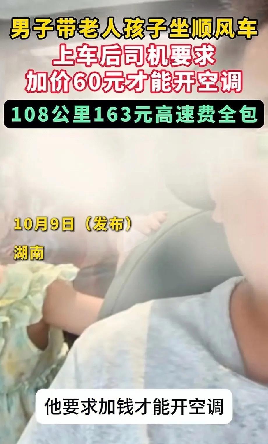 湖南一男子带高龄残疾奶奶和幼童打顺风车,108公里付了163元还包高速费,途中因34度高温车内闷热,多次要求司机开空调却被索要60元加时费。司机不仅拒开空调,还锁死车窗,男子投诉客服无果后发视频吐槽,本想求同情,结果网友几乎一边倒骂他“为省60块让家人遭罪”。从法律角度看,司机临时加钱、锁窗的行为已涉嫌违约和侵权,而这场争议也暴露了顺风车服务的“模糊地带”。 一、糟心!带老带小打顺风车,开空调要多掏60块? 10月9号这天,湖南室外温度飙到34度,闷热得像个大蒸笼。这位大哥带着一家老小出门,想着顺风车方便又划算,就提前在平台订了车。 一开始沟通得好好的:全程108公里,车费163元,大哥主动说高速费他全包。司机也挺爽快,一口答应下来。上车前,大哥还特意给司机买了瓶红牛,想着跑长途辛苦,互相体谅下。 可车子一上路,麻烦就来了。车上坐了好几个人,太阳一晒,车内温度噌噌往上涨,很快就超过30度。大哥的奶奶年纪大了,还有残疾,坐在车里直喊“喘不上气”;怀里的孩子才一两岁,头发全被汗水打湿,贴在脸上直哭;大哥自己也浑身湿透,黏糊糊的难受极了。 他赶紧跟司机说:“师傅,开下空调吧,老人小孩实在受不了了。”可司机要么装没听见,要么干脆不搭理。催了好几次后,司机终于开口了:“开空调可以,得加60块钱。” 大哥当时就懵了:“咱们之前说好的价格,你没提过开空调要加钱啊!”结果司机也挺犟:“你也没说要开空调啊!” 大哥越想越气:我花钱坐车,天热开空调不是天经地义吗?你自己开车也热,凭啥要额外加钱?可方向盘在司机手里,车上还有老有小,他又不敢硬刚,只能忍着火气打平台客服投诉。 更让他窝火的是,客服电话根本打不通,人工入口都找不到,发消息也没人回,完全就是个摆设。后来他想开窗通风,没想到司机直接把车窗锁死了!一家老小在密闭的车里快被闷晕,大哥急得直冒火,却一点办法都没有。 二、法律说了算!司机临时加钱、锁车窗,到底违不违法? 这事看着是“开空调加钱”的小事,但从法律层面讲,司机的操作全是“坑”,甚至已经涉嫌违法,咱们得掰扯清楚,以后遇到类似情况别吃哑巴亏! 1. 临时加60元空调费:司机违约了! 咱们和司机通过平台下单,就相当于签了一份“服务合同”。《民法典》里明确规定,合同双方要按照约定履行义务,不能单方面变更合同内容。 大哥和司机事先约定了车费163元+包高速费,没提过“开空调加钱”,这就意味着“提供适宜的乘车环境”是司机的义务。天热开空调是正常乘车需求,不是“额外服务”,司机临时要求加60块,属于擅自变更合同,妥妥的违约行为! 2. 锁死车窗不让通风:已经涉嫌侵权! 司机锁车窗的操作更过分!《民法典》第1165条规定,行为人因过错侵害他人权益造成损害的,要承担侵权责任。 34度的高温,密闭的车厢里,老人和小孩很容易中暑、缺氧,甚至有生命危险。司机为了逼乘客加钱,故意锁死车窗,这已经对乘客的身体健康造成了威胁,属于“过错行为”。如果真的有人中暑或受伤,司机必须承担赔偿责任! 3. 平台客服失联:平台也有责任! 《消费者权益保护法》规定,消费者享有“安全保障权”和“公平交易权”。平台作为服务提供者,有义务保障乘客的安全,也有责任处理乘客的投诉。 客服电话打不通、投诉没人管,说明平台没有履行监管义务。大哥可以向平台索赔,甚至可以向消费者协会投诉平台的失职行为。 划重点:顺风车≠“随便应付” 很多司机觉得“顺风车不是专车,不用提供好服务”,这是错的!哪怕是顺风车,乘客支付了费用,就有权享受安全、舒适的乘车环境。根据《出租汽车经营服务管理规定》,司机要“根据乘客意愿使用空调等服务设备”,顺风车虽然和出租车不同,但核心义务是一样的——保障乘客的基本乘车体验。 三、网友吵翻了!一边骂乘客,一边怼司机 大哥委屈巴巴把视频发到网上,本想求安慰,结果评论区直接“翻车”,网友分成两派吵翻了天: 骂乘客“活该”的网友: “为了省60块钱,让老人孩子在车里遭罪,你这当孙子、当爹的也太不负责了!” “顺风车本来就是分摊油费,不是专车!108公里163块钱还包高速,司机根本没赚多少,开空调费油,加60块很合理啊!” 帮乘客怼司机的网友: “司机就是坐地起价!事先不说清楚,上车了才要加钱,这不就是宰客吗?” “锁车窗太过分了!万一老人孩子中暑出事,司机担得起责任吗?为了60块钱良心都不要了?” “平台客服就是摆设!收了中介费不办事,乘客受了委屈连个说理的地方都没有!” 顺风车司机们的声音: “我开顺风车从来不会这样,天热肯定提前开空调,自己舒服乘客也满意,把人热晕了反而麻烦!” 你觉得这60块钱空调费该加吗?如果是你,带着老人孩子遇到这种情况,会选择妥协还是维权?欢迎在评论区聊聊你的看法!