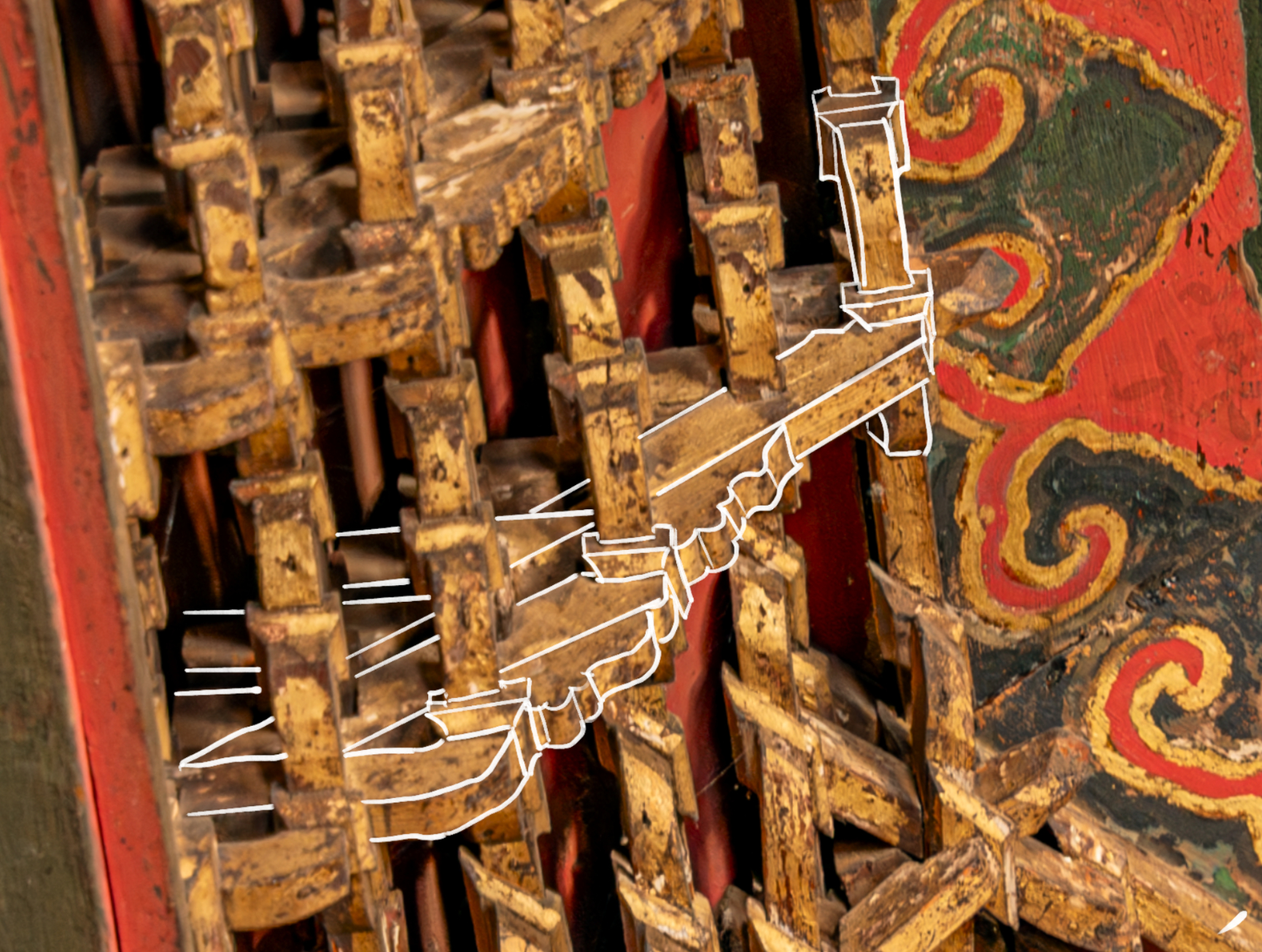 宋式殿堂上昂实例非常少见,而净土寺一次出现了两组,是重要的结构参考。从元代开始,槽内上昂迅速假昂化,刻线化,并变成明清北京官式常见的斗栱里拽刻线、六分头、菊花头。而净土寺小木作双上昂,正是殿堂斗栱传播演变过程中,北方地区重要一环,是不可或缺的实例和祖型。
