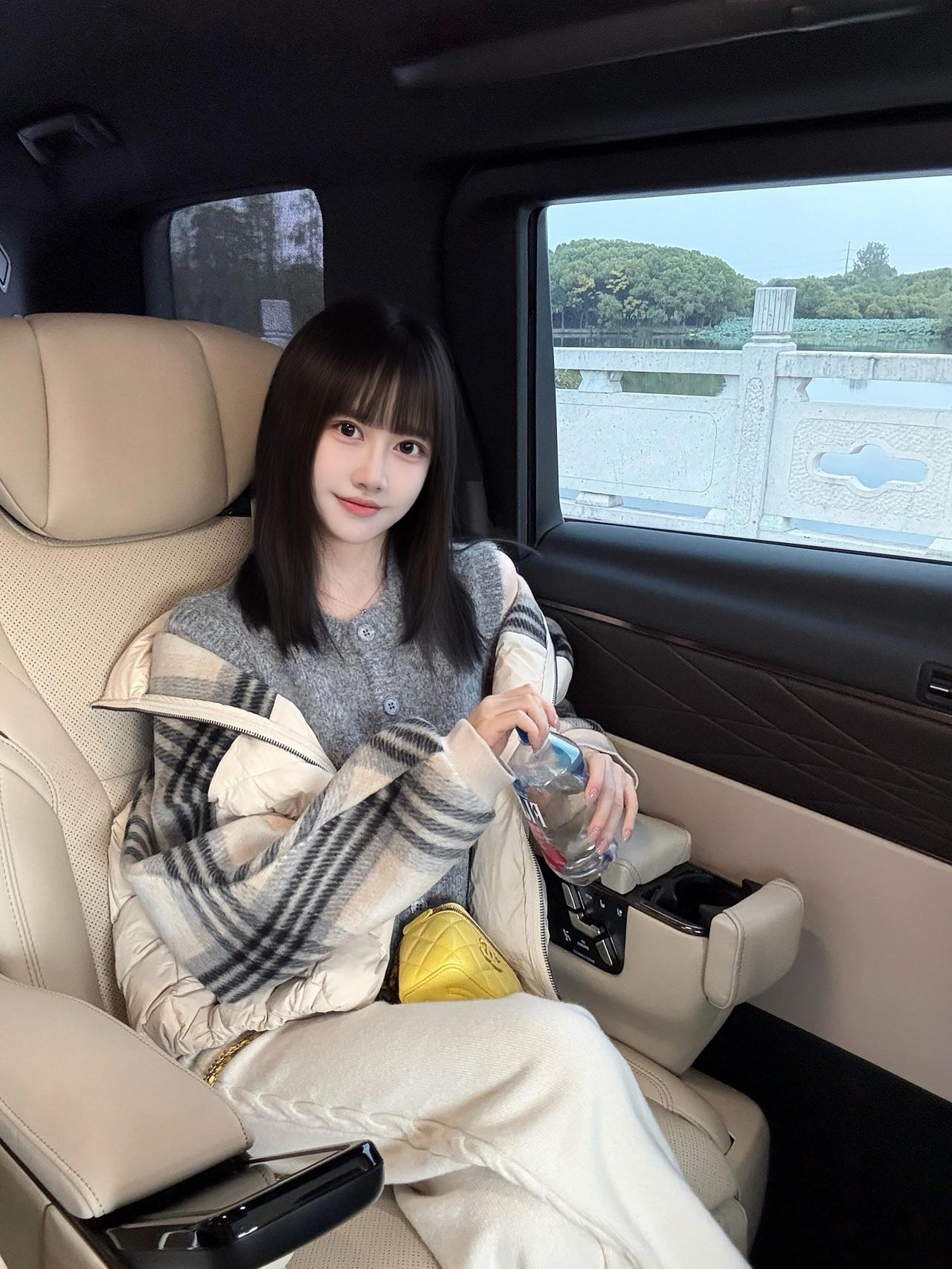 在车内享受悠闲时光暖阳洒进车窗随性舒适感穿搭