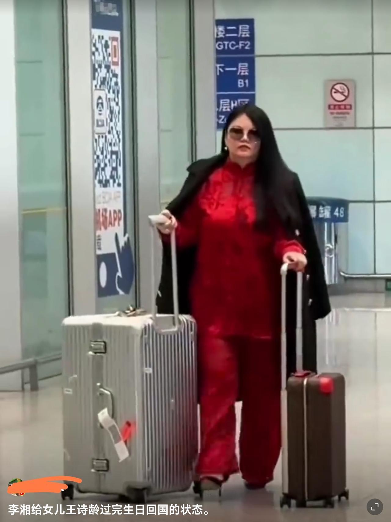 李湘怎么变成这样了? 有网友拍到李湘给女儿王诗龄过完生日之后,在机场回国的照片,