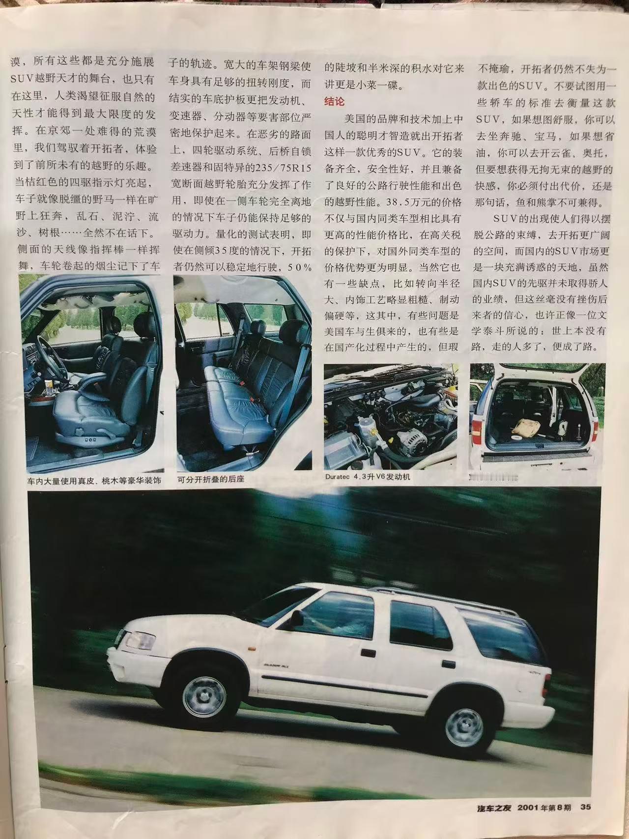 早期的开拓者顶级车型搭载了4.3升V6发动机,排气量在当时看也算得上很大,输出强劲的……190马力、340nm,升功率十分美式[doge]。在4L60变速箱拉胯的传动效率下,再配合上四驱系统,《汽车之友》杂志实测百公里加速接近15秒[赞][doge]。此车虽然跑不快,但好在也刹不住,100km/h刹停距离54米[doge]。在该杂志的实测中,120km/h油耗超过了14L,今天看非常夸张。