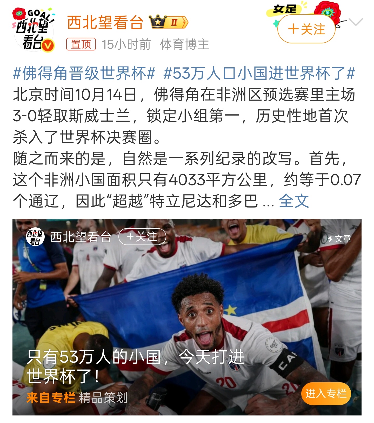 天天说踢球的人少,但是总人数只有53万的岛国佛得角都进世界杯了,他们踢球的人总不能比我们还多吧。