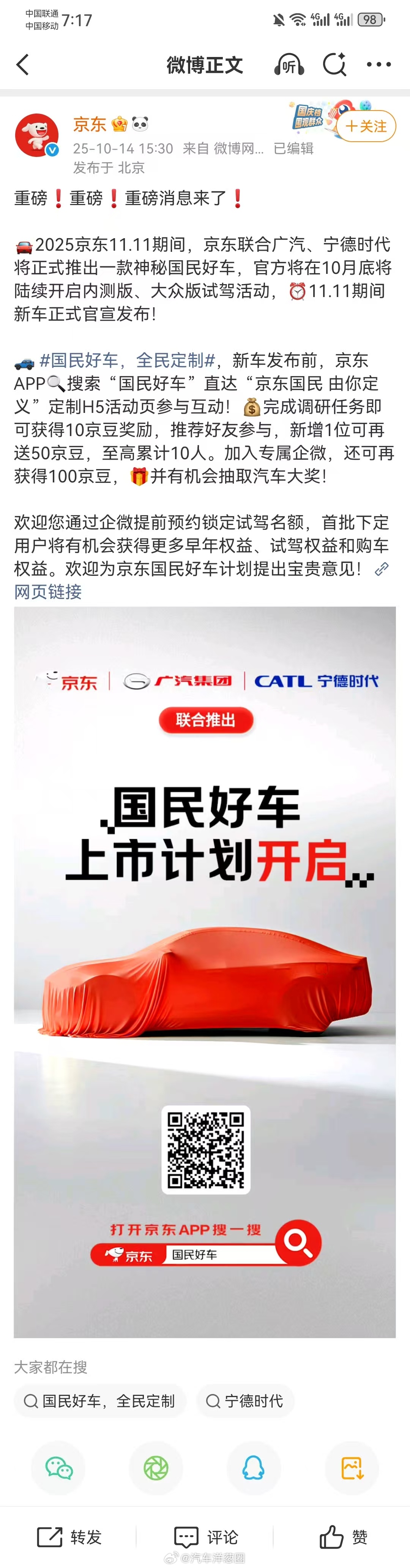 京东造车京东x宁德时代x广汽,三方联合推出,京东不直接涉及制造,主要提供用户消费洞察和独家销售。