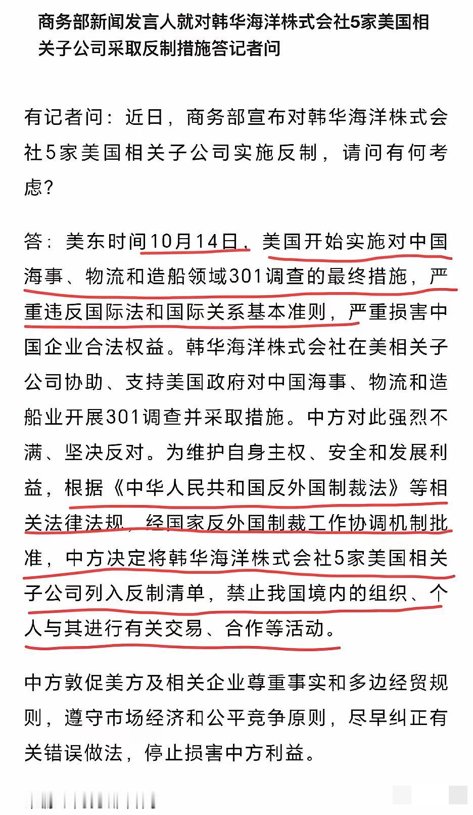 快讯!中国反手就把韩5企拍亖沙滩上!韩国,竟敢协助USA打压中国商船,韩国这回偷鸡不成蚀把米!损失大去了。 USA的对华造船业等一系列301调查,是违反国际法的。韩国造船企业,竟敢跟进冒进,以为帮助USA打压中国,造船业就能回暖韩国了? 做梦! 失去中国14亿大市场,才是韩企真正的大损失。通过此次中国果断反制,韩国该长教训啦! 韩国造船业这些年的日子本就不好过,全球航运市场波动不断,订单量时高时低,本土劳动力成本又居高不下,早就把希望寄托在国际合作上。可它偏偏选了最愚蠢的一条路——抱着美国的大腿,把矛头对准曾经的合作伙伴中国。要知道,中国不只是全球最大的造船市场,更是韩国造船企业最重要的客户之一。从大型集装箱船到液化天然气运输船,中国企业的订单曾一次次帮韩国船厂渡过难关,现在倒好,为了讨好美国,说翻脸就翻脸,转头就参与到打压中国商船的行列里,这种背信弃义的操作,本身就违背了商业合作的基本底线。 美国发起的301调查,明眼人都看得出来,就是为了遏制中国制造业的发展,维护自己在全球产业链中的霸权地位。可韩国造船企业却像抓住了救命稻草,以为跟着美国站队,就能从中国市场的空缺里分一杯羹。他们忘了,中国从来不是任人拿捏的软柿子,更不会让自家企业平白无故受委屈。中国的反制,不是一时冲动,而是对恶意打压的正当回应,也是在告诉所有心怀侥幸的国家和企业:想要一边赚中国的钱,一边拆中国的台,门都没有! 更可笑的是,韩国造船企业以为失去中国市场,还能靠美国订单填补空缺。可美国向来是精致的利己主义者,之前对欧洲盟友的贸易打压、对日本半导体产业的限制,哪一次不是为了自身利益?等美国利用完韩国,转过头来就可能对韩国造船业下手,毕竟美国本土的造船企业也盼着抢占市场份额。到时候,韩国企业既丢了中国这个稳定的大市场,又得不到美国的真心扶持,两头落空的苦果,只能自己咽下去。 中国14亿人的市场,从来不是说说而已。从日常消费品到大型工业设备,中国的需求支撑着全球无数企业的发展。韩国造船企业放弃这片沃土,就像农民主动放弃肥沃的良田,去守着贫瘠的土地盼丰收,注定是竹篮打水一场空。这次中国的反制,不仅是为了维护本国企业的合法权益,更是给所有试图跟风打压中国的国家敲响警钟:合作才能共赢,对抗没有出路。 韩国要是真聪明,就该趁早醒悟,别再做美国的马前卒。重新回到合作共赢的轨道上,修复与中国市场的关系,才是挽救本国造船业的唯一正确选择。继续执迷不悟,只会在错误的道路上越走越远,最终彻底失去翻身的机会。 各位读者你们怎么看?欢迎在评论区讨论。 韩国造船业 中美造船