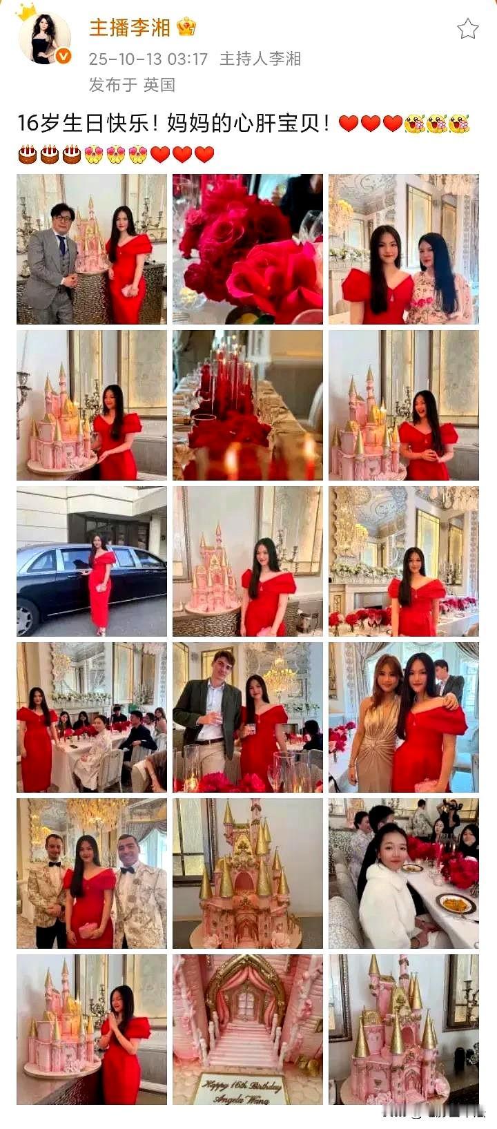 10月13日北京时间深夜凌晨03时17分,主持人李湘在英国伦敦按捺不住激动的心情为自己的宝贝女儿王诗龄庆祝16岁生日。 这次王诗龄生日,王诗龄、王岳伦、李湘都发了同样的照片,王诗龄身穿红色礼服笑容满面,但是不知道为什么,王诗龄居然没发和爸爸的合照…… 网友对此表达观点: 高考考进清华北大的,才是真正的厉害[赞],其它的,呵呵[捂脸] 父母都挺有格局,虽然分开了,但发朋友圈都是把对方的照片放在自己的前面[赞][赞][赞][赞] 国内捞钱,国外挥霍。可怜国内那些追星族们。为什么这种现象就不能制止。移民转移资产都不能控制吗? 这些出去在国外的,为什么经常在要在中文平台晒,不到国外平台去晒。