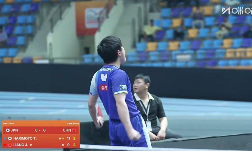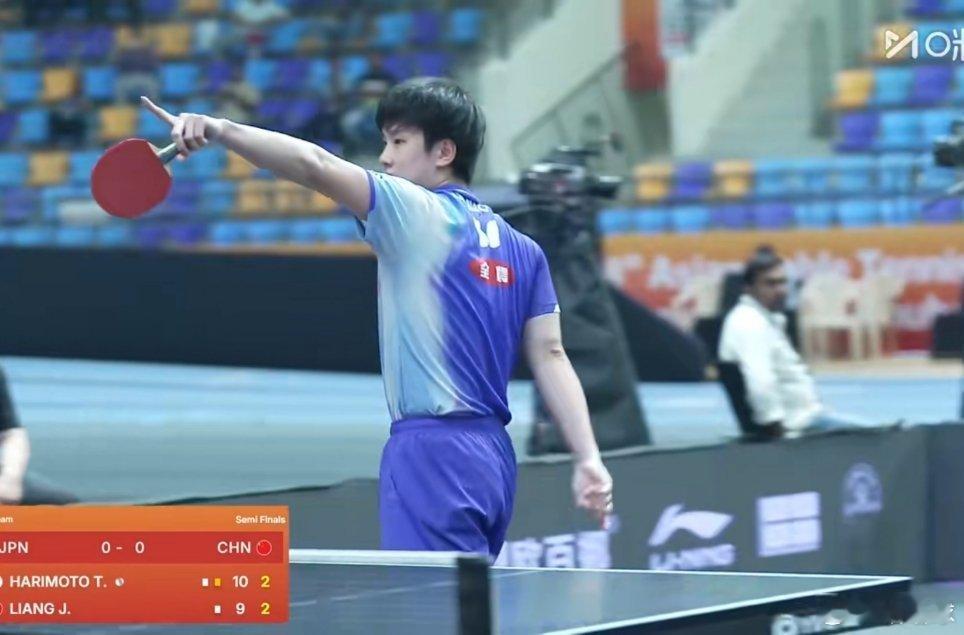 亚锦赛男团半决赛的对抗里,真见国乒的硬气!张本智和拖延时间拿黄牌想搅乱节奏,梁靖