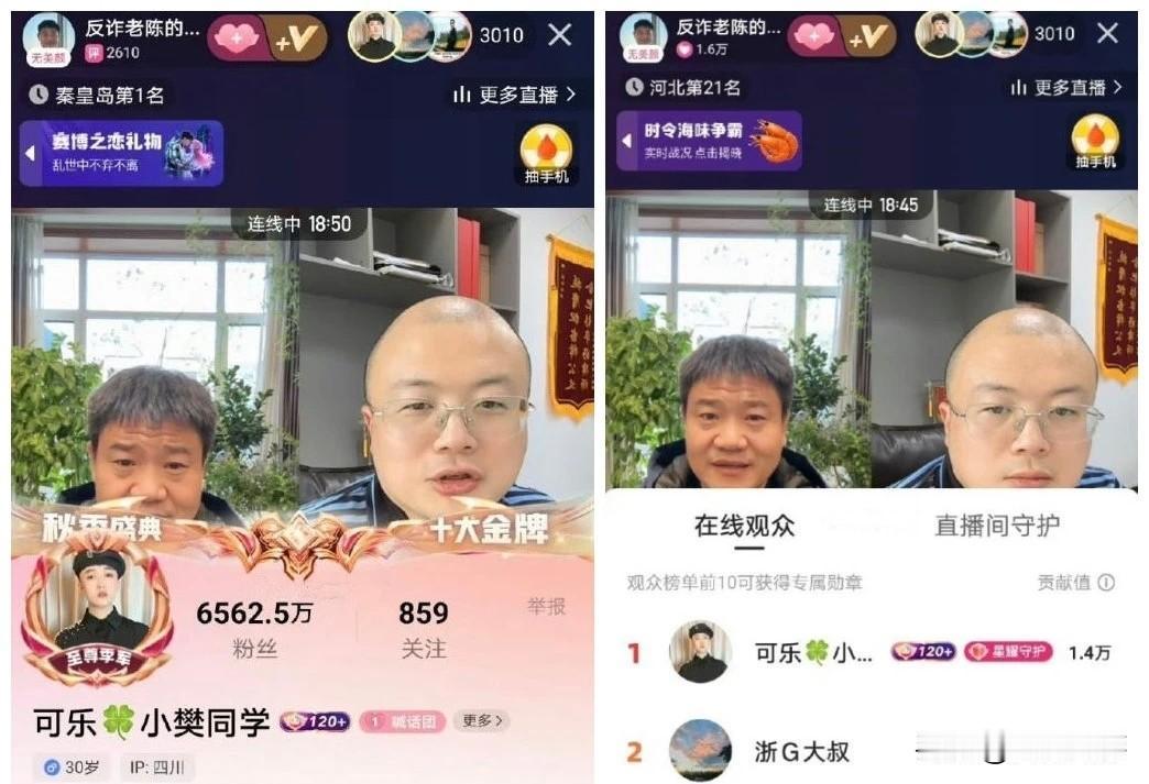 “反诈老陈”止战喊话丁老五:目标不是你!丁老五却斗志激昂猛Gan回击。 昨天报道丁老五声援罗金宝,被“反诈老陈”盯上调转目标,双方几轮隔空喊话揭秘售卖产品的伪劣问题,丁老五态度硬气完全不怂! 老陈直播公开喊话丁老五:别挡道,我喊的是别人,哪个“瓜”都比你的大!你站为罗金宝说他是好孩子,我就蹭个热闹,你直接奔着我来了,你别再叫号整些没有用的,没必要! 可丁老五的火气窜出来便摆出越战越勇的姿态,再次隔空喊话反诈老陈:别找人吓唬我,我有事可以随便Gan我!你会报警我也会,我都懒得拿你产品说事,就看咱俩谁先败!有些事儿,我把舆情整大了看看有没有人管,陪你到底!我要是不敢去你当地拉横幅,永久退网! 今晚反诈老陈又发视频隔空喊话丁老五“休战”停止,有更大的目标等着自己去揭秘打假!如果丁老五想来我当地拉横幅Ju报也不阻拦,见面请吃饭,但把横幅留下因为违Fa。 随后又附上专业律师对丁老五售卖的灵芝孢子粉产品虚假宣传进行解读科普!值得注意的是今天下午在老陈与该律师的连麦对话中,四川可乐出现在直播间刷礼物,先行混个脸熟!
