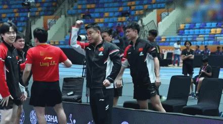 亚锦赛男团半决赛,国乒3-2击败日本打进决赛,梁靖崑拿下决胜盘的决胜局,飞奔至场边的队友席,王楚钦第一时间送到拥抱和摸头杀。来看国乒胜利时刻~!