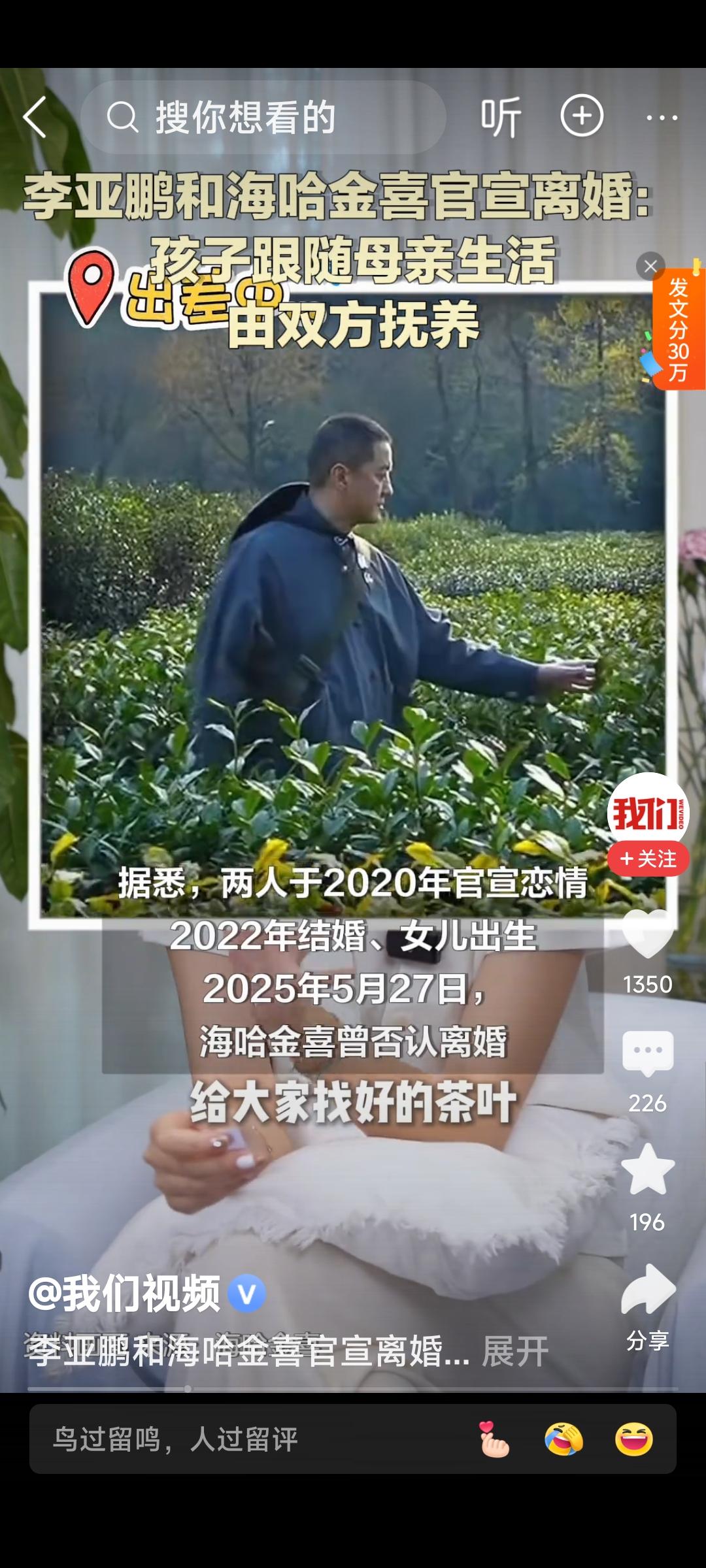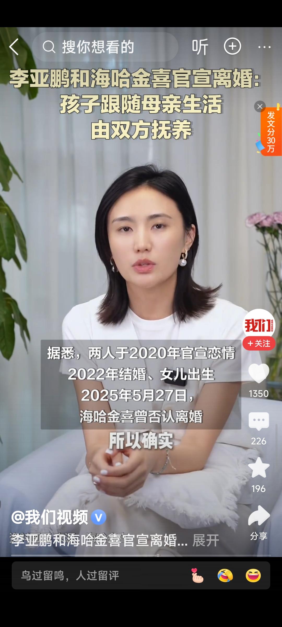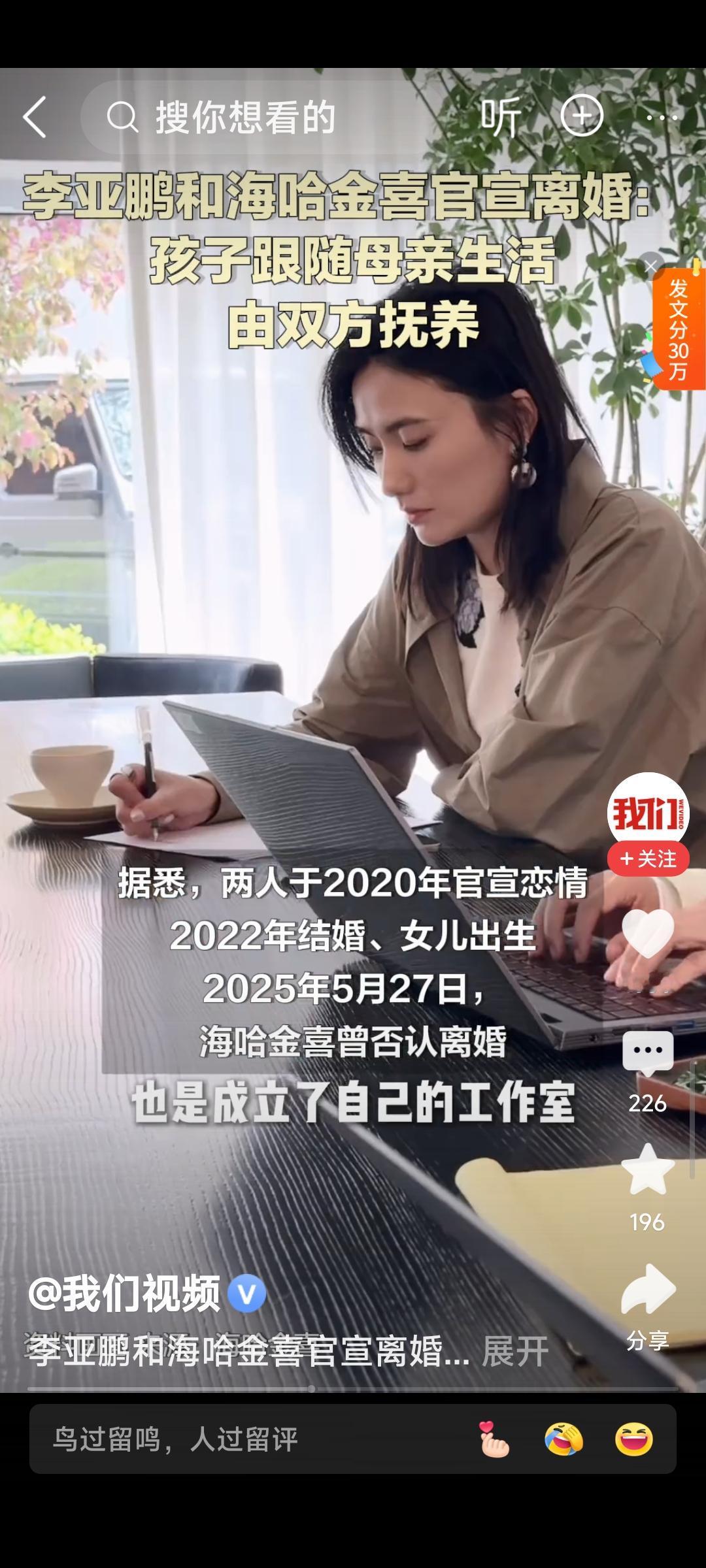 李亚鹏官宣离婚 海哈金喜34岁,估计才看清现实,觉得自己还年轻,想赶紧刹车及时止损。也许她在李的身上看不到翻身的希望,何况负债累累的李已经54岁,很难再有翻身的机会! (图片全部来自网络侵删)