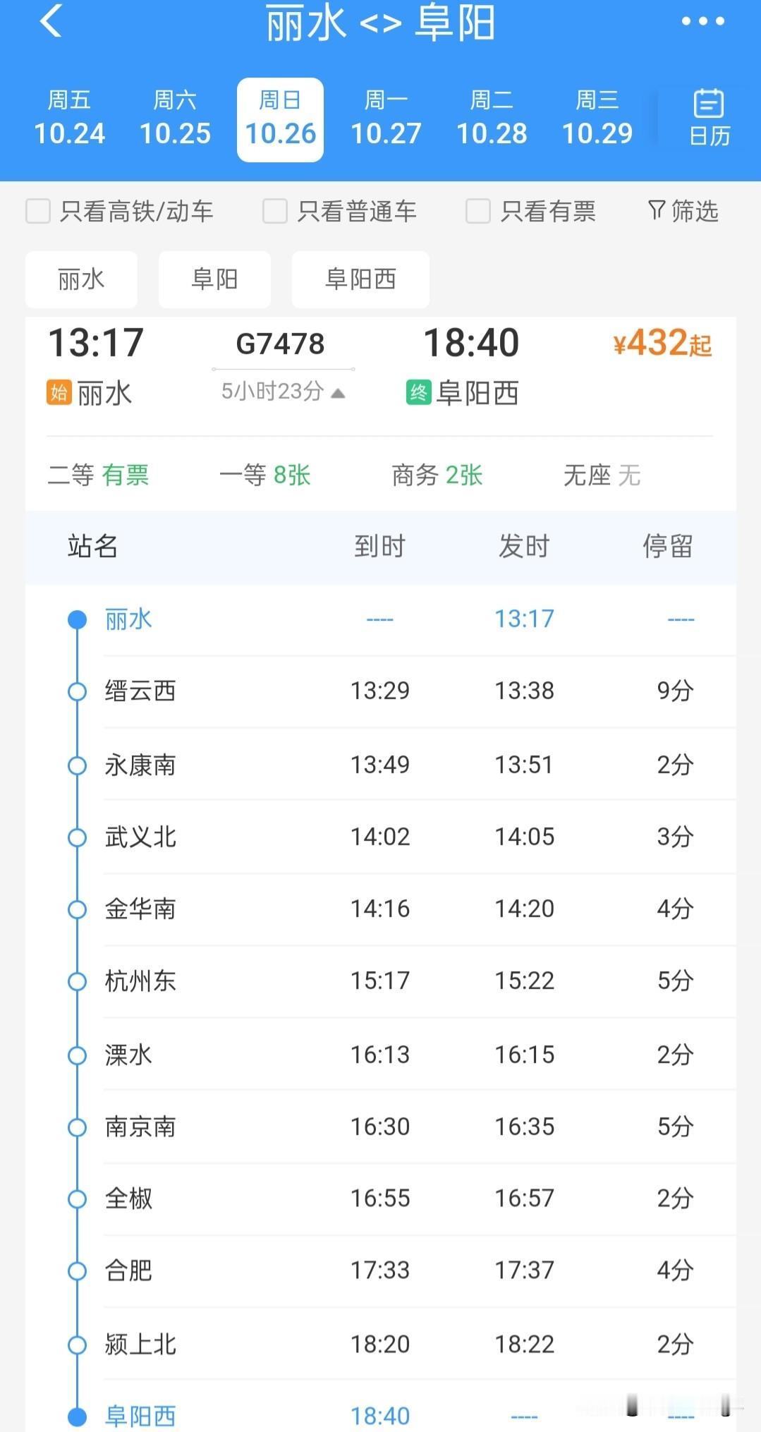 丽水站三趟始发列车,全为G字头,速度却只能压着跑 丽水市,位于浙江南部山地丘陵区域,城区为莲都区,也是浙江生态资源最丰富的区域之一。丽水站作为丽水市的重要铁路枢纽,连接两条铁路,一条是金温货线,另一条是金温客专。西南部的遂昌县,松阳县和龙泉市以及庆阳县,还有途经的衢宁铁路,三条铁路构成了丽水市主要的铁路运输布局。 丽水站,站台规模三台七线,金温铁路时速250公里,金温货线时速则不足100公里,G字头到这里也要按照时速跑。丽水站每日到发列车超过了100趟,高峰期间会有更多的列车到达丽水站。 G7602次列车,丽水站去往合肥南站最早的一趟列车,8:13开,11:58到,全程需要3小时45分,虽然在丽水站要按照时速250公里跑,但是金华到南京段确实时速350公里运行。 G7478次列车,丽水站去往阜阳西站的一趟车,全程需要5小时23分,全程也是在时速250公里到350公里之间。 G7310次列车,丽水站开往南京南站,这趟列车绕行上海松江站,上海虹桥站,苏锡常等城市,时间上也是达到了5小时。 丽水站在建的一条高铁衢丽高铁,设计时速250公里,预计2027年开通连接松阳县遂昌县直通衢州。 丽水还规划建设杭丽高铁,设计时速350公里,连接杭州西站,途经缙云县永康市。引入金义铁路金义站。还有丽水至南平铁路,丽水至宁德铁路,丽水至宁波铁路等规划建设,进一步完善丽水市的铁路网,各个方向出行也会更加便捷高效顺畅。