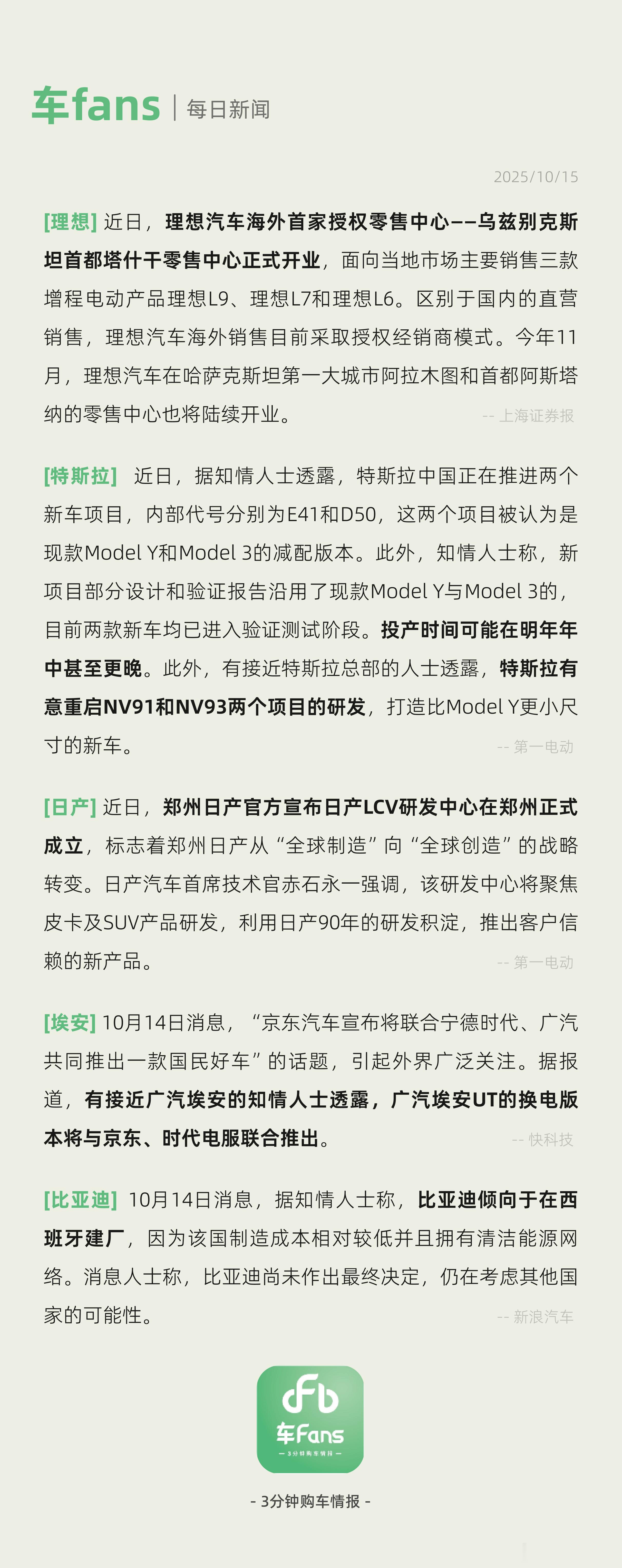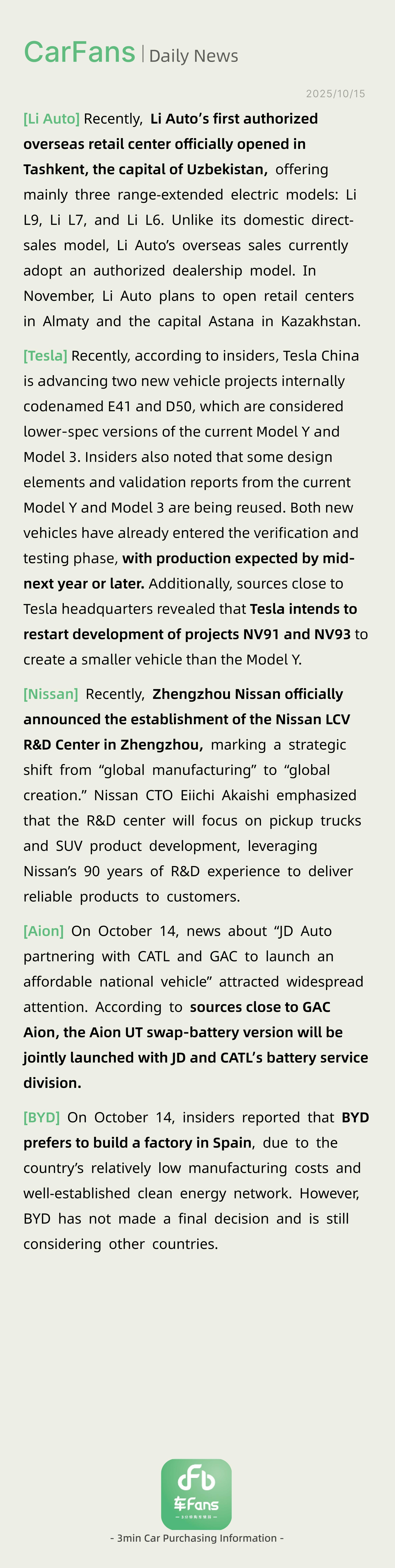 理想海外首家授权零售中心开业、特斯拉中国正在推进两个新车项目据知情人士透露,特斯拉中国正在推进两个新车项目,内部代号分别为E41和D50,这两个项目被认为是现款Modely和Model3的减配版本。