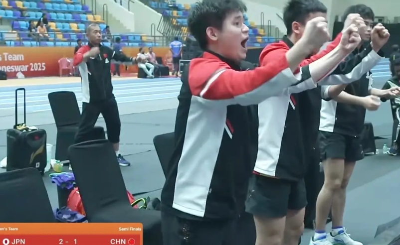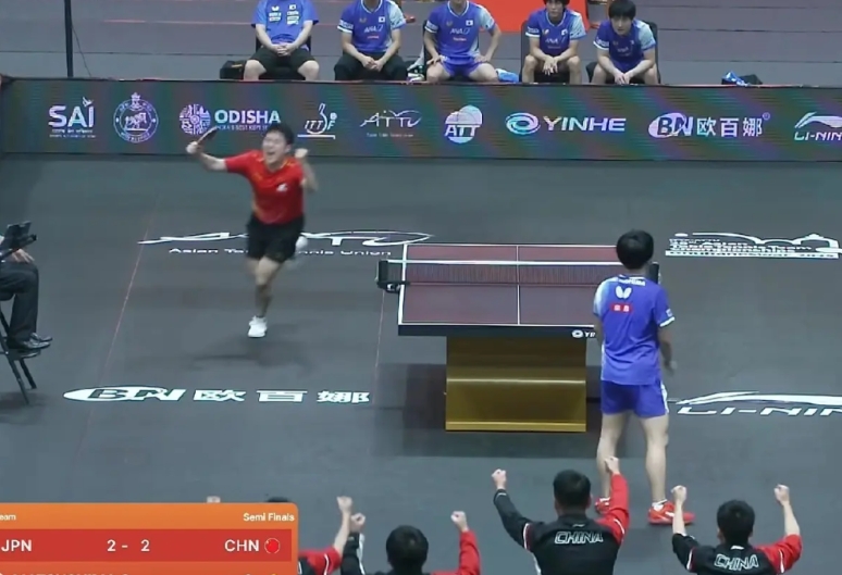 亚锦赛半决赛,中日苦战四个多小时,从14日晚打到15日凌晨,打满五盘每盘五局,最终国乒3-2赢下比赛,晋级男团总决赛。 赢下比赛的一瞬间,梁靖崑兴奋跑起来了,王皓朝日队握拳庆祝,日本队表情都是懵的。王楚钦开心的笑了,林诗栋大声呐喊加油,这样的场面太感人了,林诗栋、王楚钦、梁靖崑,三兄弟齐心协力不放弃,取得这场来之不易的胜利。 比赛太精彩了,熬夜看到现在,已完成没有思路,只有记录精彩瞬间。 很少看到这样热血的比赛,国乒让二追三实现逆转,国乒男团太棒了, 决赛加油夺冠!!! 图片来自网络侵犯可删。