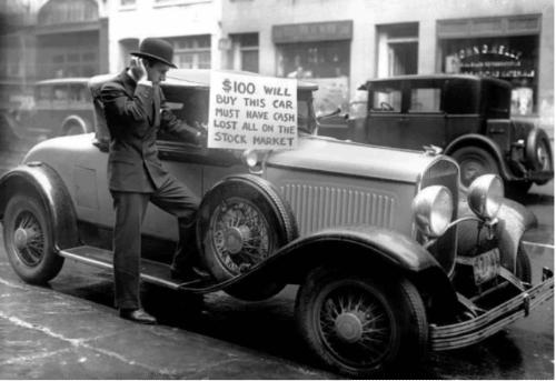 1929年的美国街头,一位身着西装、头戴圆顶礼帽的男子倚在一辆复古豪华跑车旁,左手举着白底黑字的标语牌——“$100 WILL BUY THIS CAR MUST HAVE CASH LOST ALL ON THE STOCK MARKET”(100美元即可买下这辆车,必须现金,我在股市输光了一切),神情里满是破产后的窘迫与无奈。 1929年10月24日(“黑色星期四”),华尔街股市单日暴跌11%,随后一周内道琼斯工业指数狂泻30%,超300亿美元财富(相当于如今数千亿美元)蒸发。照片中“输光一切”的投资者,是全美超1500万失业者、数千万破产家庭的缩影。这辆车在1929年的原价约为3995美元。它属于当时的凯迪拉克豪华系列。这类豪华车代表着顶级的工业设计与工艺,价格远超普通车型——同期福特T型车仅售约500美元,而这辆凯迪拉克的原价几乎是其8倍,是当时中产阶级数年的收入总和。