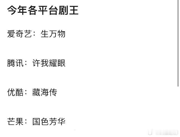 又快到年底了,今年各平台的剧王差不多定了吧?🥝 生万物🐧 许我耀眼👖 藏海