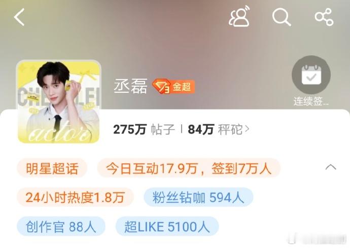 丞磊真的吸粉了不少,超like破5000了,恭喜啊[哇]