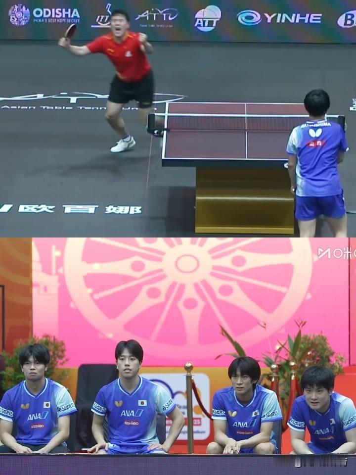 日本队集体凝固!梁靖崑拿下最后一分,激动到双手握拳,冲向中国队这边去找王皓教练庆祝!摄影师特别会找镜头,拍到了一幅名画面:日本队队员坐在凳子上,集体目光呆滞凝固,很好地诠释了什么叫呆若木鸡!你们一人输一分,谁也别怪谁!想想日本队赢球后,朝着我们中国队怒吼嚣张的样子,再看看赛后集体凝固的样子,想到一句赛中有多嚣张,赛后就有多狼狈!这是日本队距离金牌最近的一次啊,到手的金牌又飞走了!