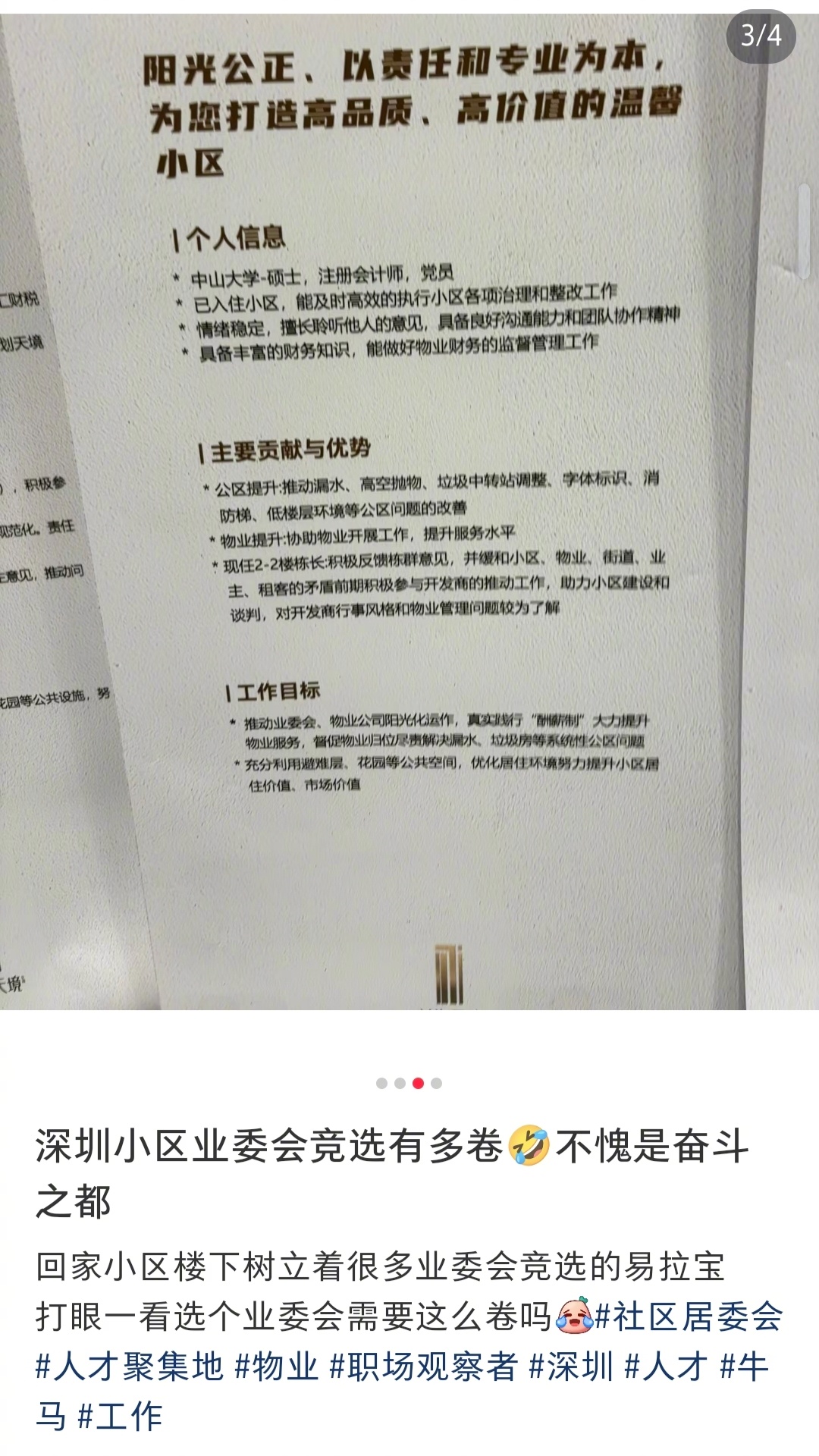 刚小红薯看到这个,感觉不可思议。在小区当业委会成员,有什么好处吗?趋之若鹜(为业主服务?)不说,还要卷成这种高度。