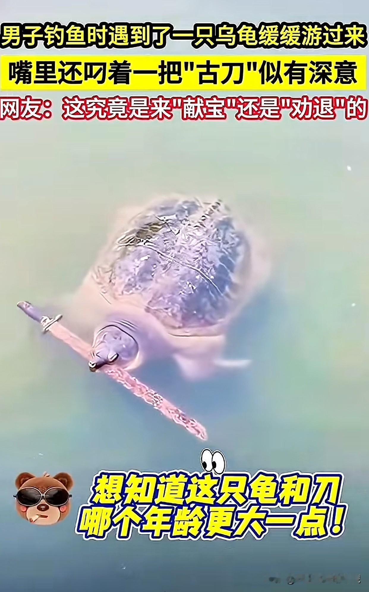 “这真解释不清了!”最近广东有个哥们去钓鱼,居然碰到一只甲鱼叼着把生锈的短剑朝他游过来!本来钓鱼钓得都快睡着了,结果被这场景惊得睡意全无。 当时他正低头玩手机等鱼上钩,一抬头就看见这只背壳花纹像地图的大甲鱼慢慢游过来。仔细一看好家伙,嘴里紧紧咬着一把十厘米左右的金属短剑,剑身全是锈。网友们都在猜,这甲鱼到底是来“送宝贝”的还是来“下逐客令”的?还有人把它错认成乌龟,其实甲鱼的壳比较软,嘴巴尖尖的像鹰嘴,跟乌龟完全两码事。 我个人觉得吧,这很可能是甲鱼在水底找吃的,不小心把这旧物件当食物叼起来了。不过说实话,这种巧合真的挺有意思的,让人忍不住猜想这把剑背后是不是藏着什么老故事。说不定这甲鱼真成了穿越时空的信使,把被遗忘的历史带到了我们面前。 生活就是这样,总在普通的日子里给你准备点小惊喜。这件事既让我们感受到大自然的神奇,也提醒我们脚下这片土地可能埋藏着无数未知的故事。下次出门钓鱼散步时,不妨多留心身边的动静,说不定你也会遇见属于自己的奇妙经历呢。