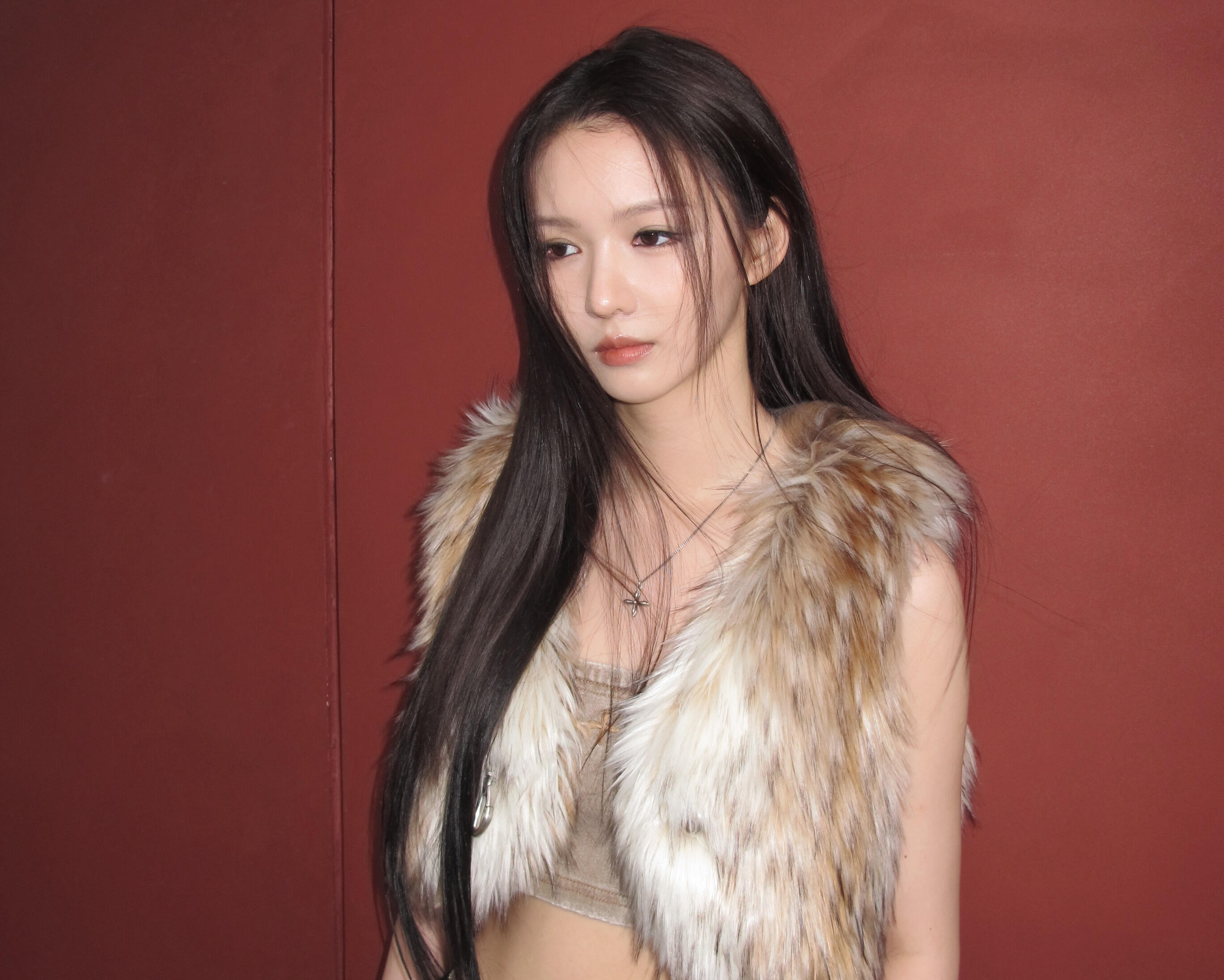 戴燕妮一袭金辉薄纱长裙亮相上海时装周