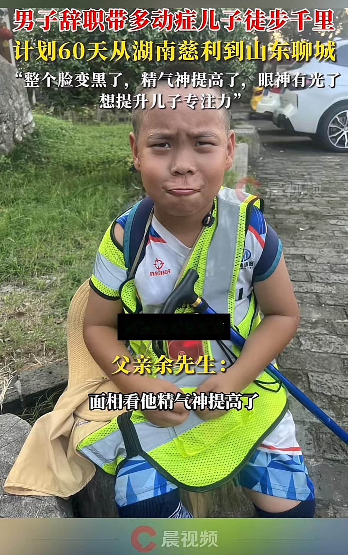 一位父亲带着9岁的多动症儿子,计划用60天的时间要徒步1000公里。是从湖南走到山东,这个新闻被多家媒体报道,这个爸爸已经成为了焦点。这孩子之前被确诊是多动症,因为上课坐不住学习困难,在今年的3月就已经办理休学了,为了提升孩子的专注力和体力。 于是爸爸就辞去了月薪两万的工作。 甚至因为在教育理念上存在着分歧,和妻子还分开,独自带着孩子踏上了这场徒步疗愈之旅。有人就质疑每天让这么小的孩子走25公里腿受得了吗?这位父亲说那些批评的人,并不 了解孩子的真实情况。 小景爸爸说,现在已经徒步十几天了,“整个脸变黑了”孩子的眼神越来越亮了“眼睛有光了”,孩子通过运动是有科学依据的。这位父亲真的不容易,放下时间放下高薪帮助自己的儿子,“子不孝父之过”这充分体现了父亲的责任与担当,他是一个有责任心的父亲。