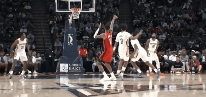 阿门与阿尔瓦拉多争抢篮板,爆发严重肢体冲突 NBA季前赛,对阵鹈鹕的比赛正