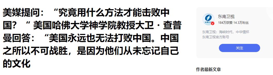 美媒提问:“究竟用什么方法才能击败中国?”美国哈佛大学神学院教授大卫・查普曼回答