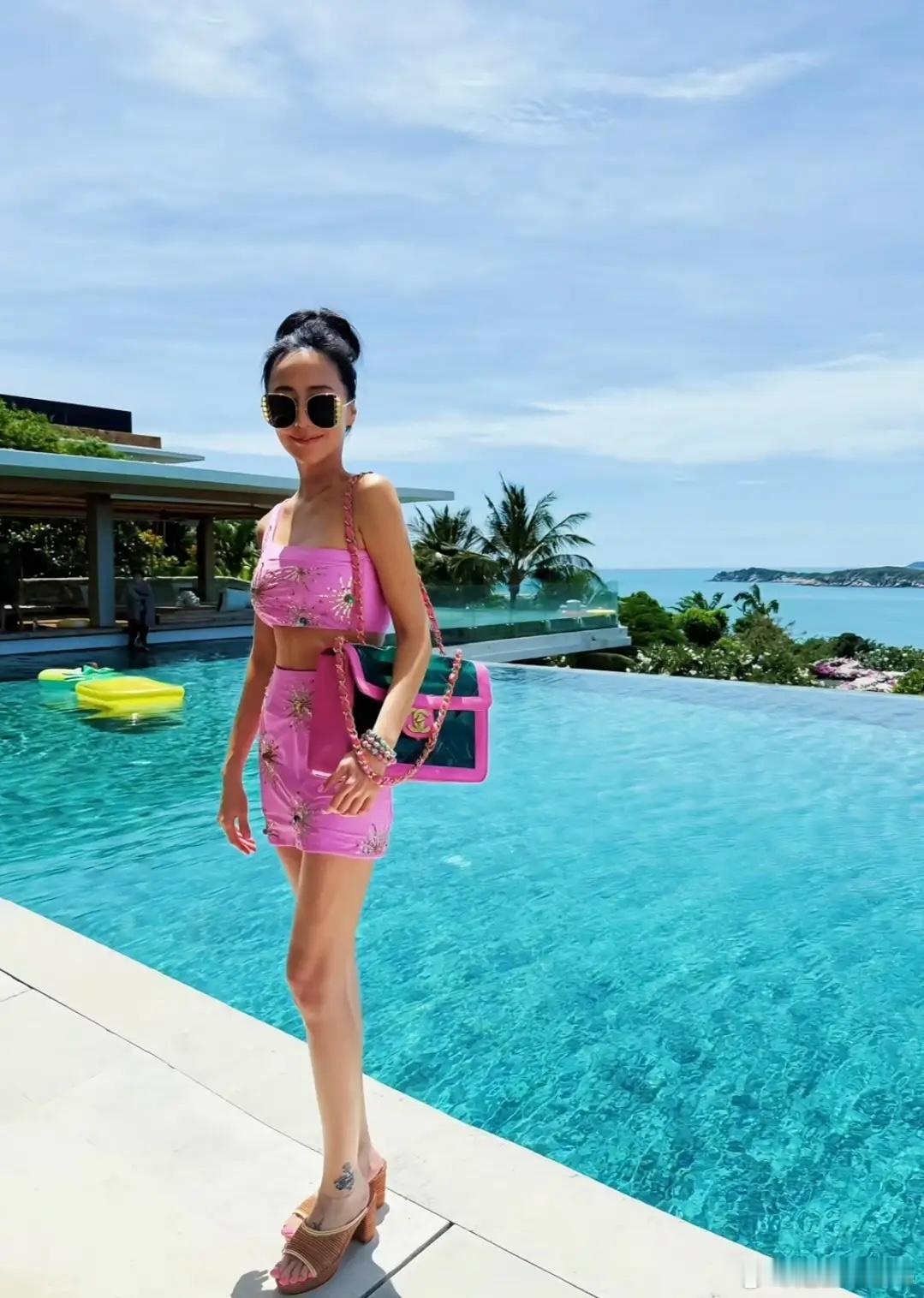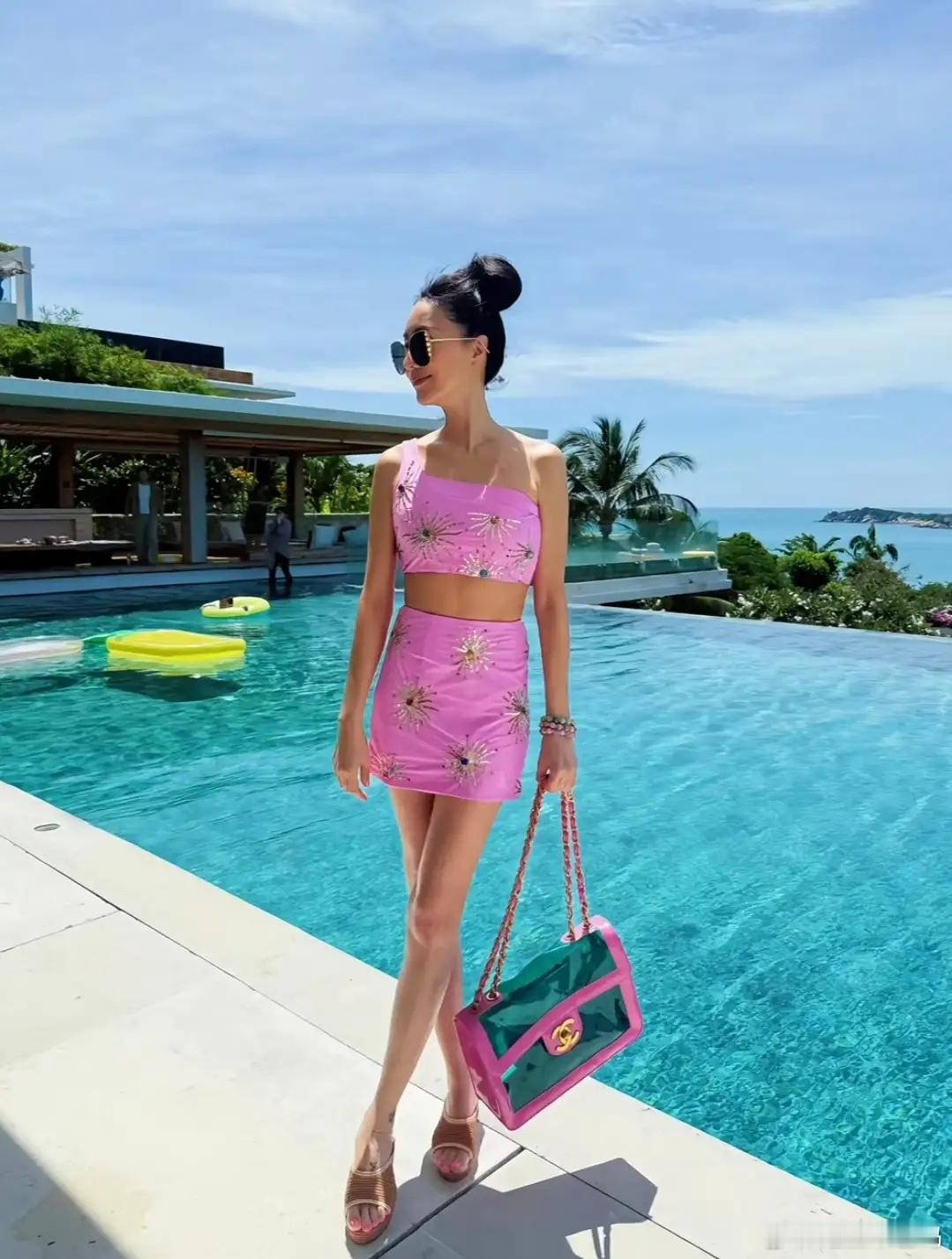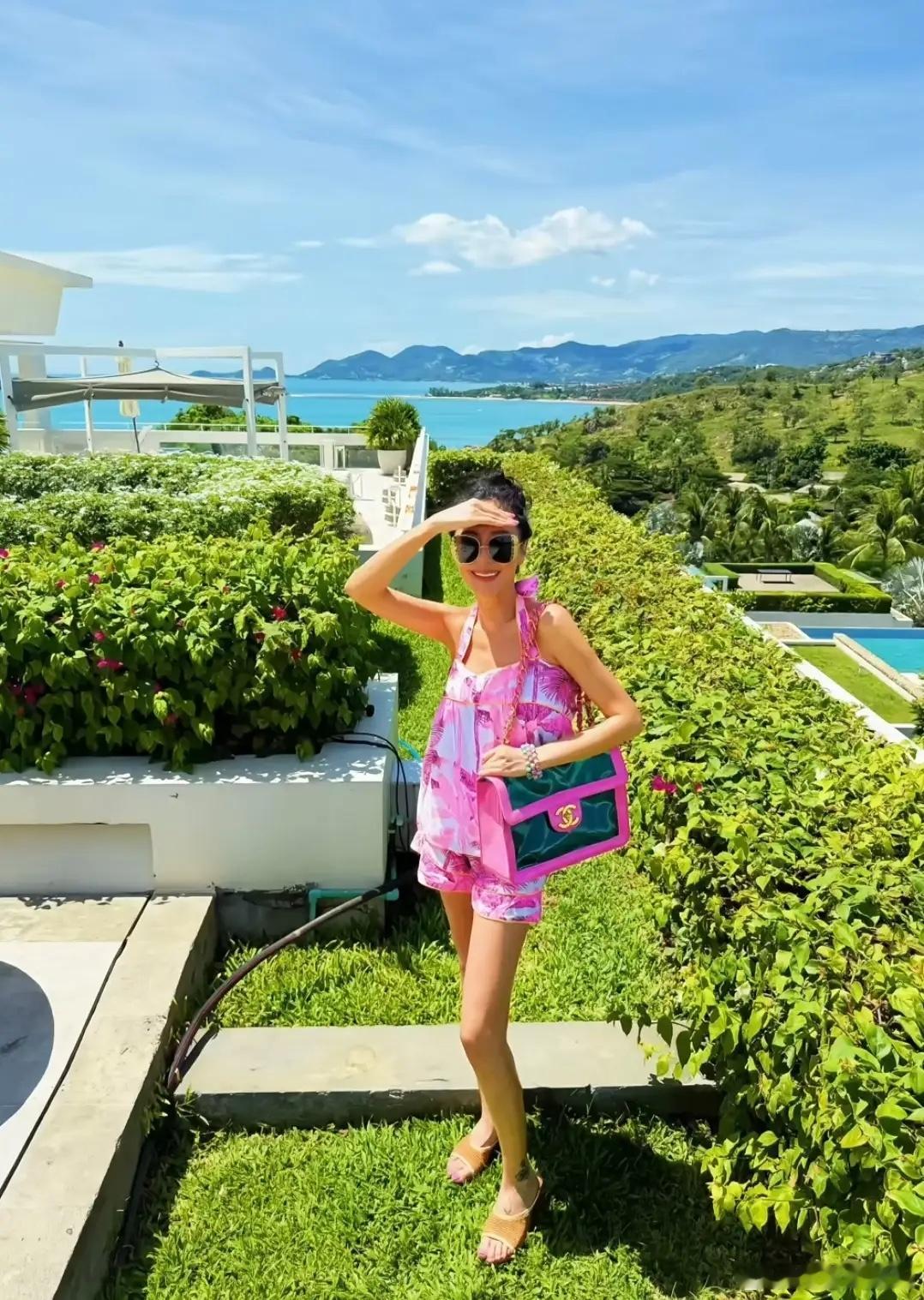 49岁关颖与家人游泰国,生3孩身材仍苗条纤细,把老公熬成了爹!