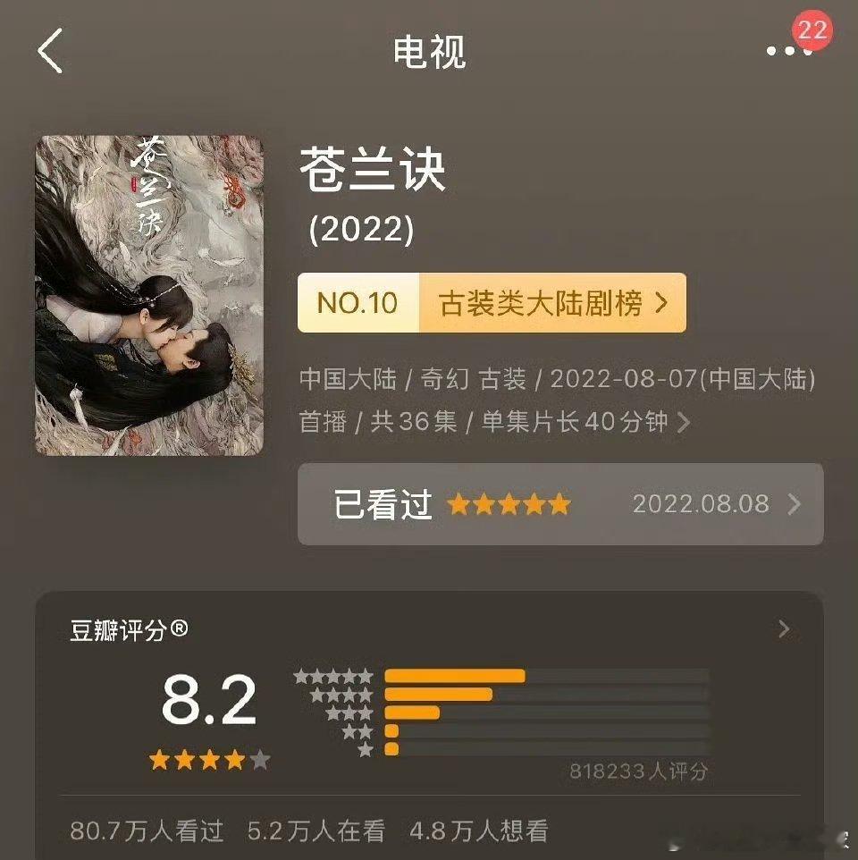 《苍兰诀》50多万人打分