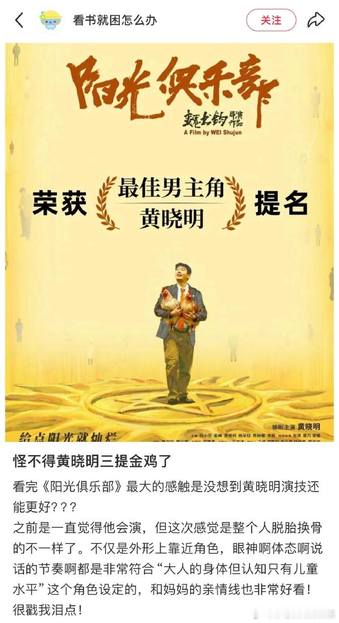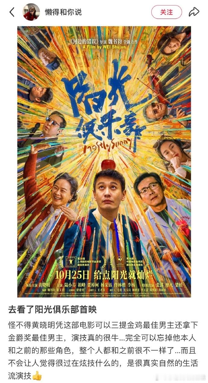 《阳光俱乐部》首映口碑大事很妙,许多观众说黄晓明的可塑性很强,吴忧有可能成为黄晓明的再一个经典角色,好好好高低得去看一看了!