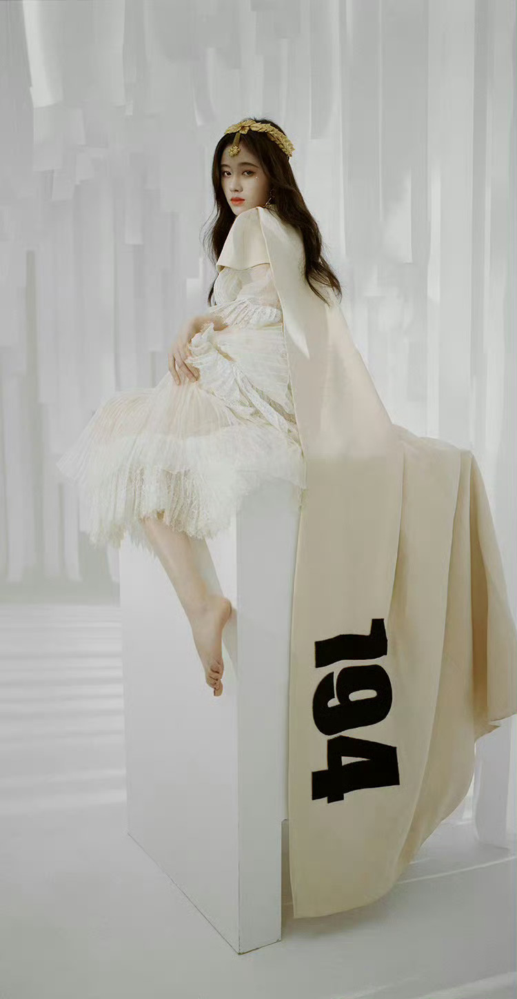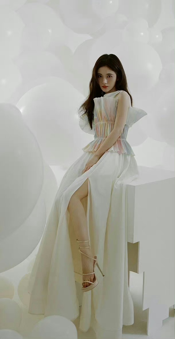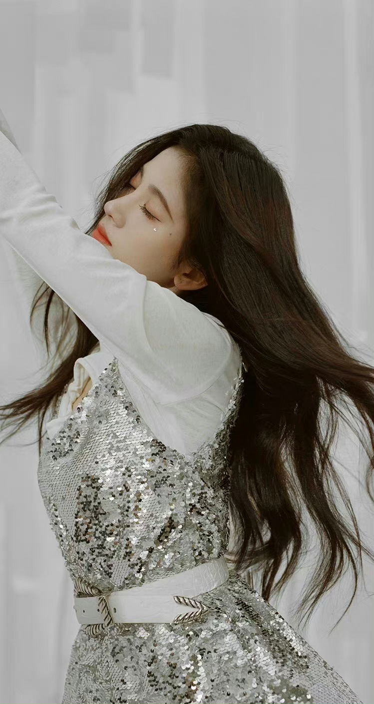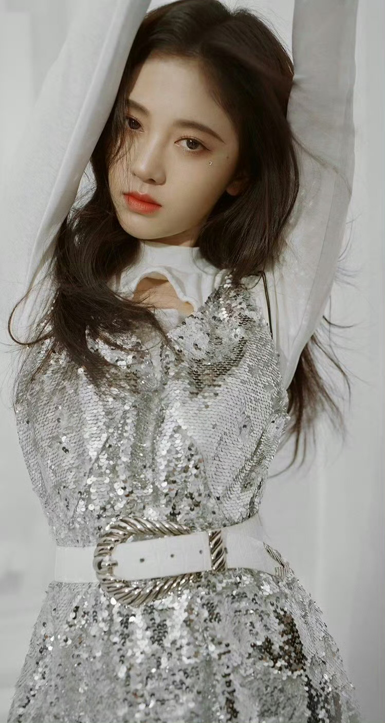 鞠婧祎,银色穿搭的少女感