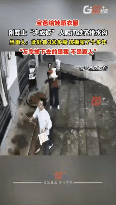 10月13日,四川巴中一对小夫妻家的院子里,妈妈正抱着几个月大的宝宝。妈妈身旁晾晒着一大盆辣椒等农产品,旁边还停放着一辆婴儿小推车。 在妈妈的叮嘱下,爸爸去晾晒宝宝的衣服。他左手拿着衣服,右手握着撑衣杆。当他抬头用撑衣杆晾衣服时,脚下的木板突然塌陷,爸爸一下子跌了下去。 这起事件发生在四川巴中的一户人家院子里,属于一起家庭意外。具体情况如下: 时间:10月13日 地点:四川巴中的一个院子,一对小夫妻家 妈妈抱着几个月大的宝宝 妈妈身旁晒着一盆辣椒等农产品 旁边有一辆婴儿推车 爸爸在妈妈的指挥下晾晒宝宝衣服 爸爸左手拿衣服,右手用撑衣杆 抬头晾衣服时,脚下木板突然塌落 爸爸随之跌落 这一意外暴露出家庭院子存在安全隐患,可能是木板年久失修或维护不当所致。好在事件中未提及其他人员受伤或出现严重后果,但此类意外提醒人们要关注家庭环境的安全隐患,尤其是户外区域。 若你需要更详尽的分析、建议或相关信息,可随时告知!
