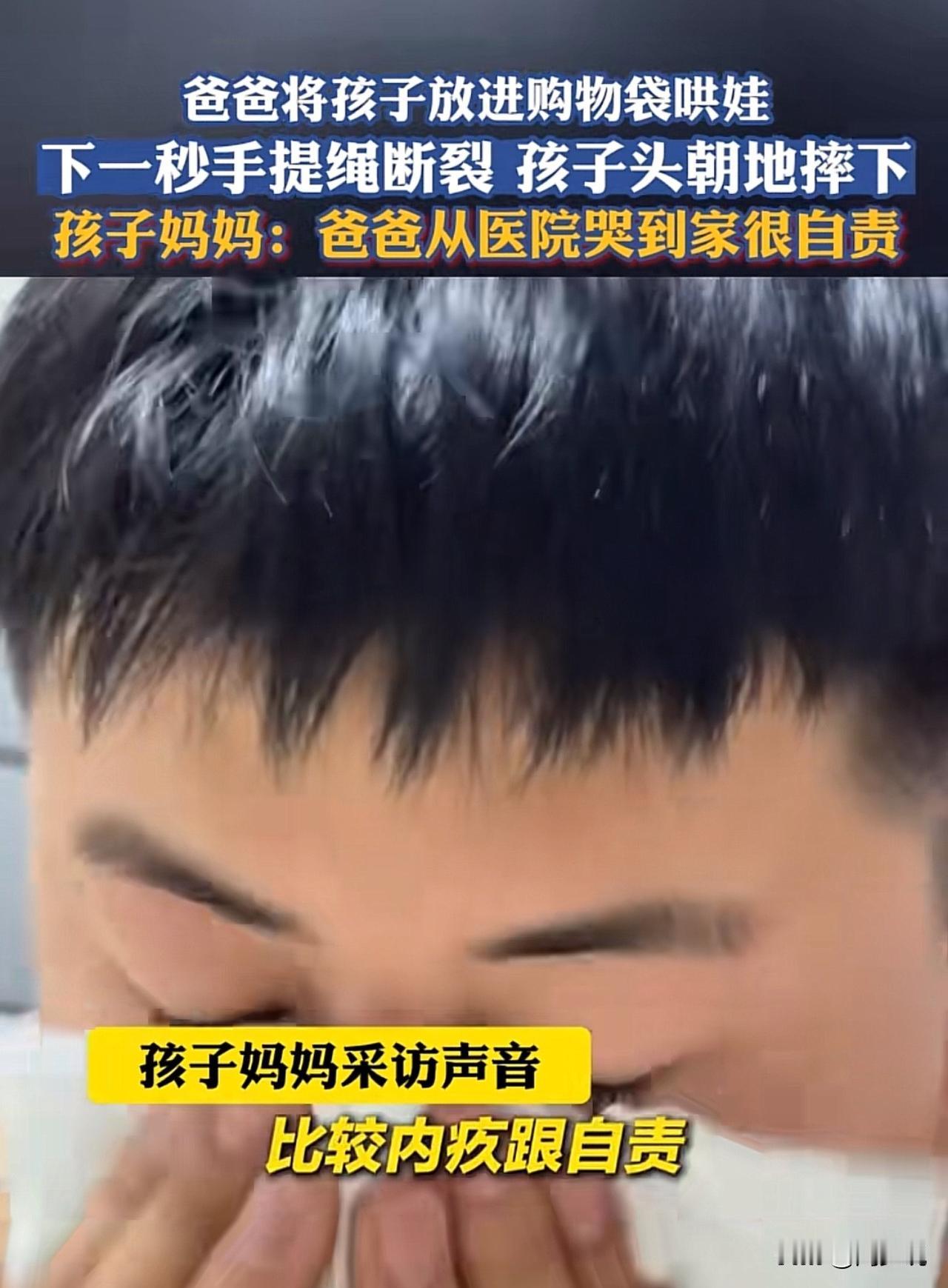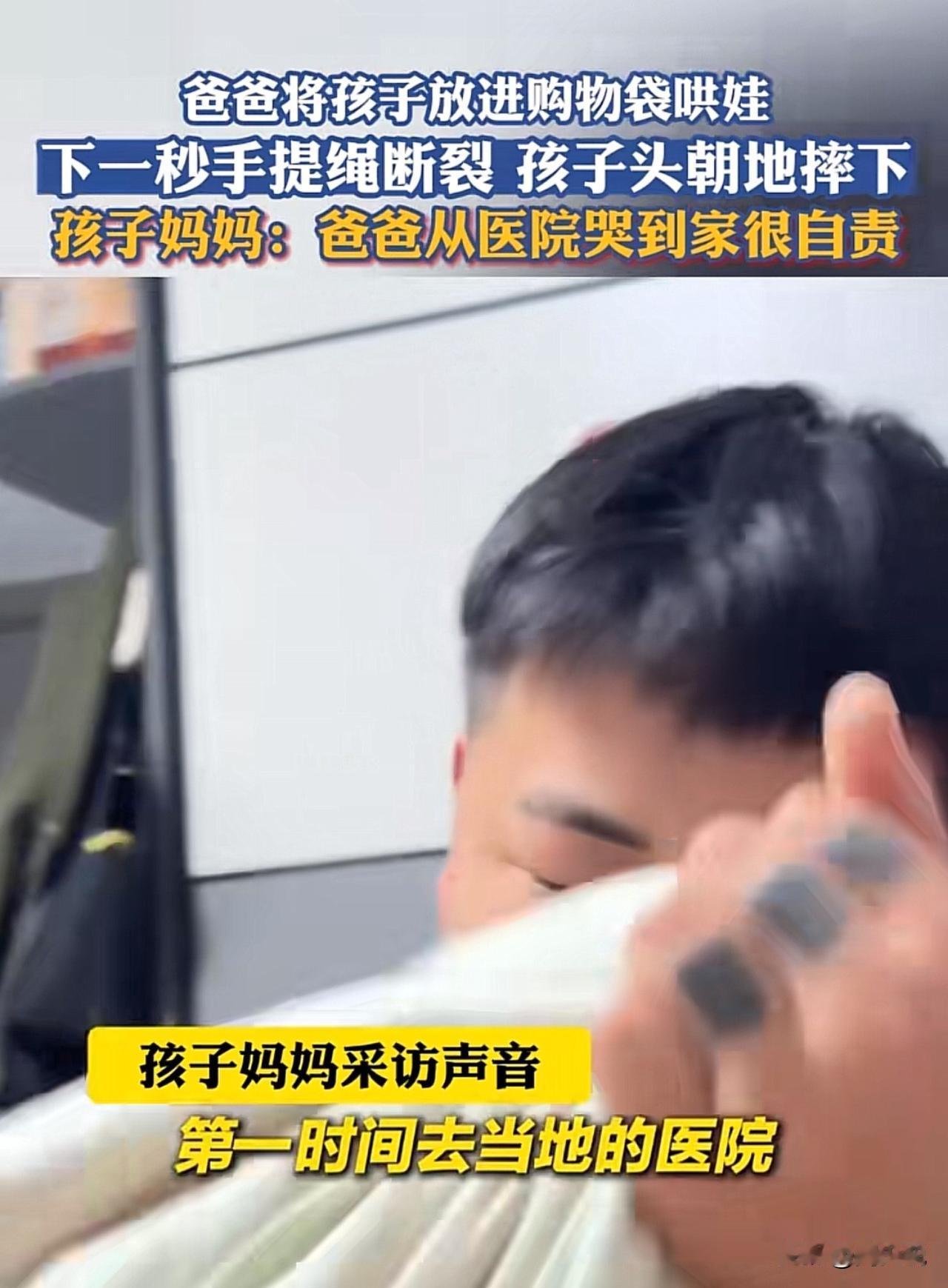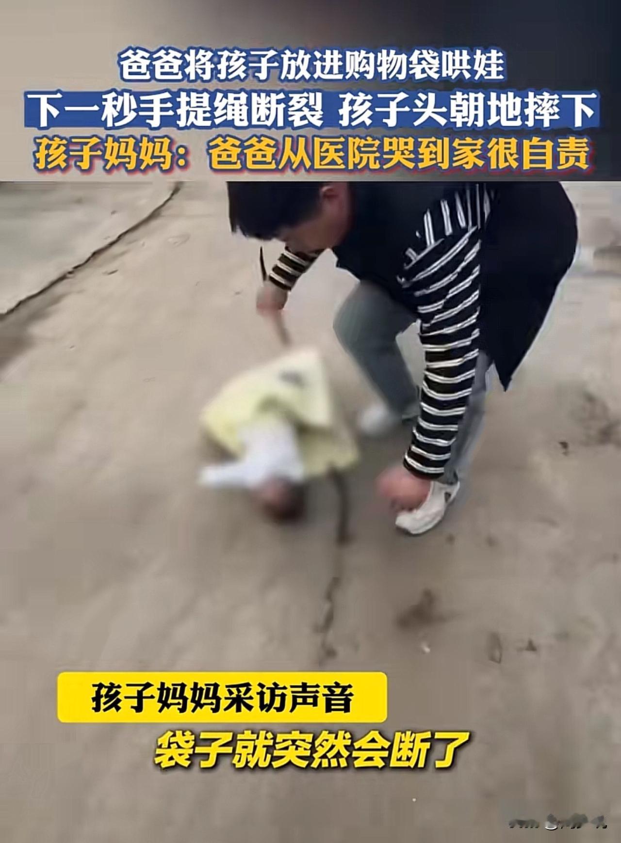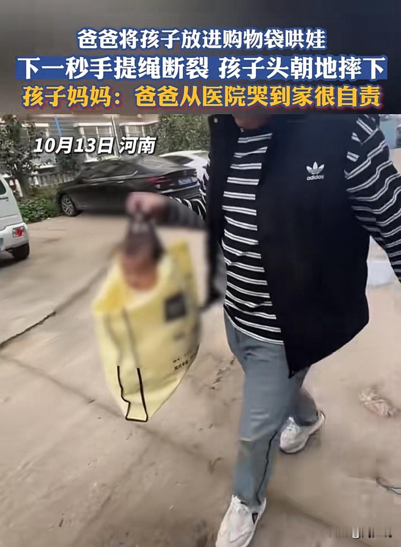 #爸爸将娃放进购物袋 娃头朝地摔下#“真是太惊险了!”河南一位爸爸将幼小娃放进购物袋哄娃,结果下一秒手提绳断裂,娃头朝地摔下,看呆众人! 据孩子妈妈透露说:“孩子一直哭,孩子爸就想哄娃开心,但是没有想到袋子会突然断裂,第一时间就去了医院,孩子爸比较内疚和自责,一直哭到家里。幸亏孩子没事,回家观察后续情况。” 看到这个新闻,周少想说既心疼孩子,也理解家长的无奈。把孩子放进购物袋哄玩,看似是一时的“小聪明”,却忽略了潜在的安全风险。 从教育角度看,这其实反映了部分家长在育儿知识和安全意识上的不足。孩子的成长需要家长在日常中不断学习和积累正确的育儿方法,而不是仅凭经验或“图省事”。 当然,最幸运的就是孩子安全没事,要不然的话,不但孩子遭罪,家长也要自责一辈子。总而言之,这事也给大家提醒,切勿将孩子当儿戏,安全意识还是要增强。 对于这位爸爸的做法,大家怎么看呢?#寻美三湘# #长沙新朋友#