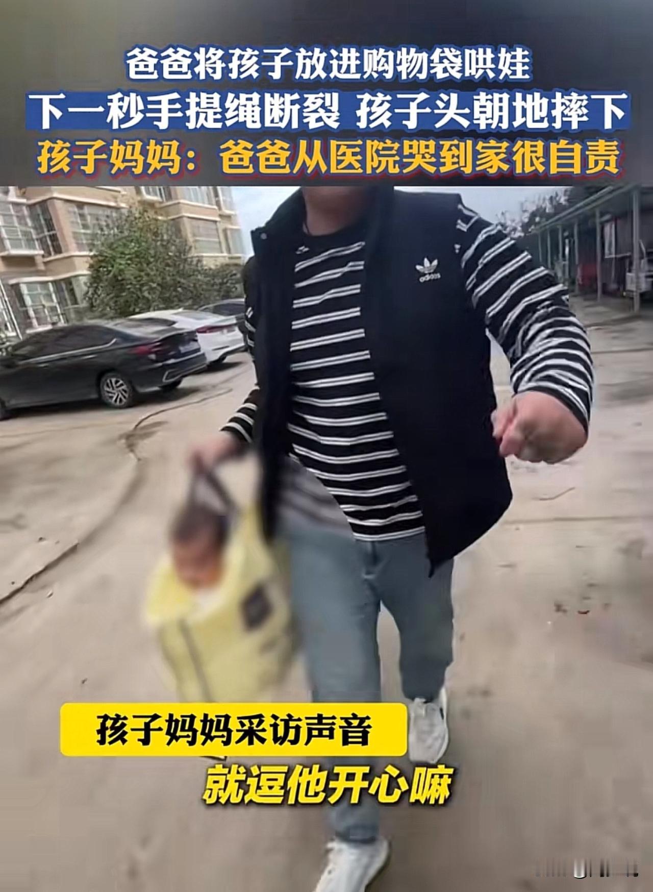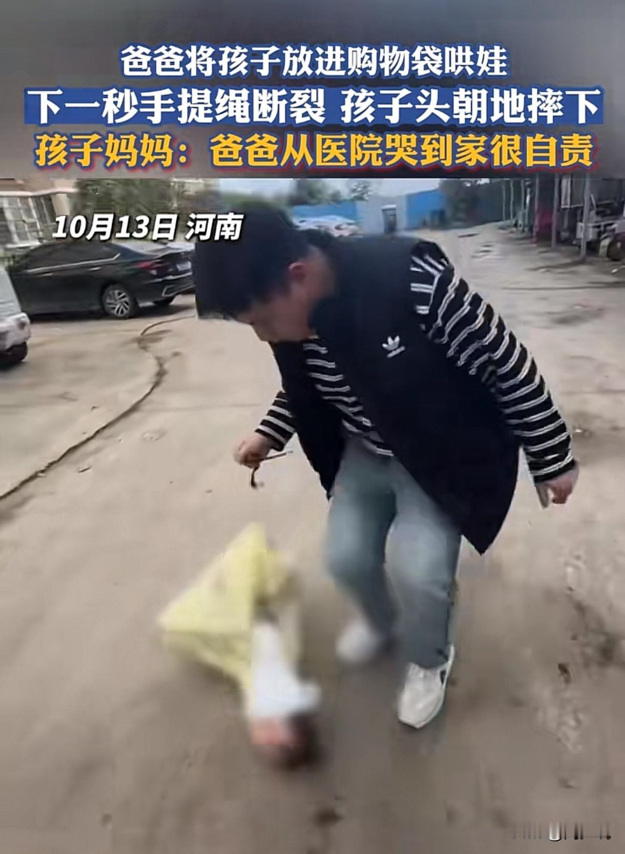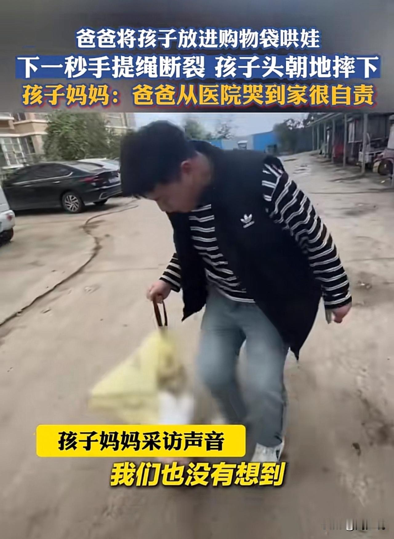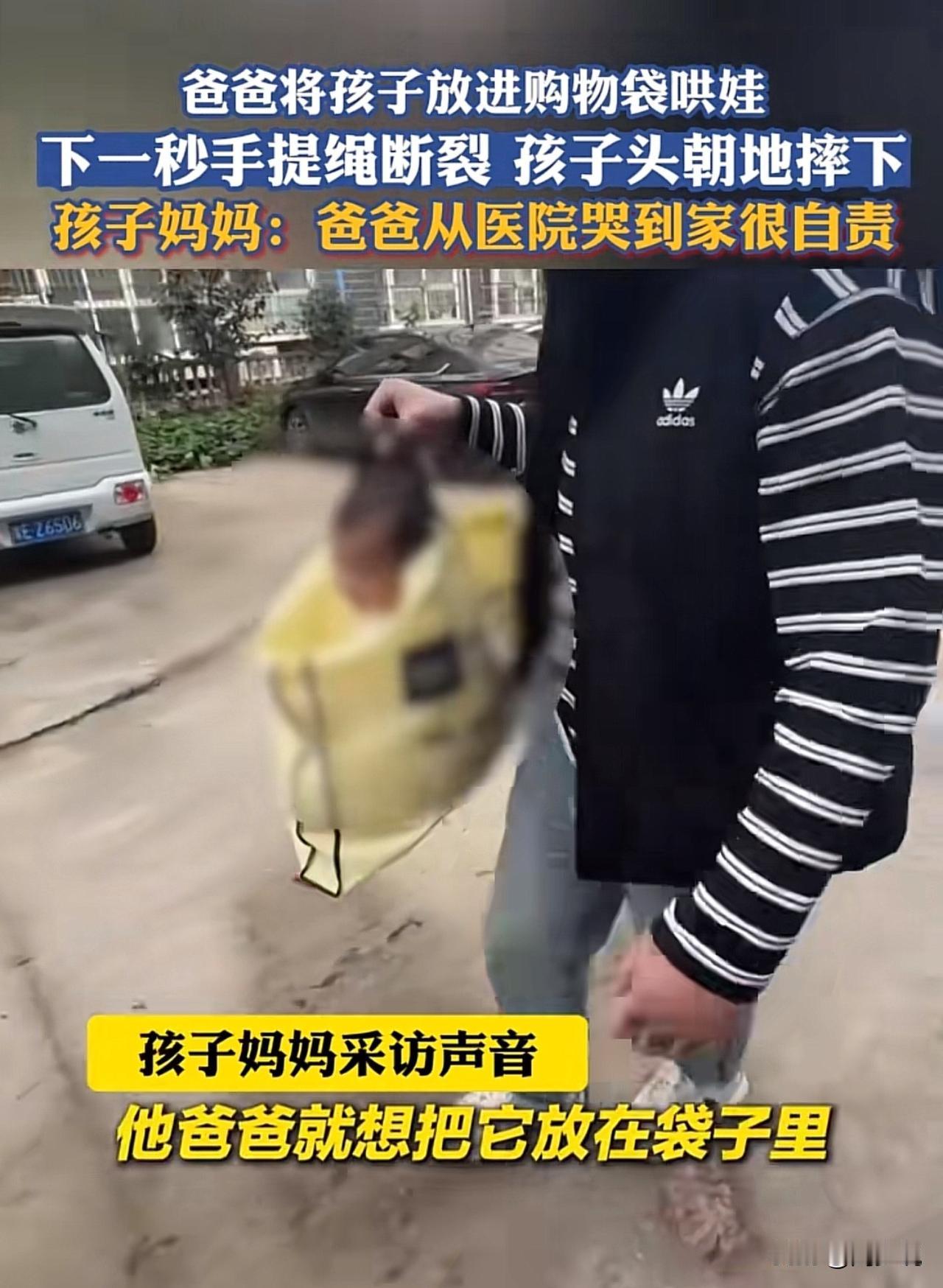 #爸爸将娃放进购物袋 娃头朝地摔下#“真是太惊险了!”河南一位爸爸将幼小娃放进购物袋哄娃,结果下一秒手提绳断裂,娃头朝地摔下,看呆众人! 据孩子妈妈透露说:“孩子一直哭,孩子爸就想哄娃开心,但是没有想到袋子会突然断裂,第一时间就去了医院,孩子爸比较内疚和自责,一直哭到家里。幸亏孩子没事,回家观察后续情况。” 看到这个新闻,周少想说既心疼孩子,也理解家长的无奈。把孩子放进购物袋哄玩,看似是一时的“小聪明”,却忽略了潜在的安全风险。 从教育角度看,这其实反映了部分家长在育儿知识和安全意识上的不足。孩子的成长需要家长在日常中不断学习和积累正确的育儿方法,而不是仅凭经验或“图省事”。 当然,最幸运的就是孩子安全没事,要不然的话,不但孩子遭罪,家长也要自责一辈子。总而言之,这事也给大家提醒,切勿将孩子当儿戏,安全意识还是要增强。 对于这位爸爸的做法,大家怎么看呢?#寻美三湘# #长沙新朋友#