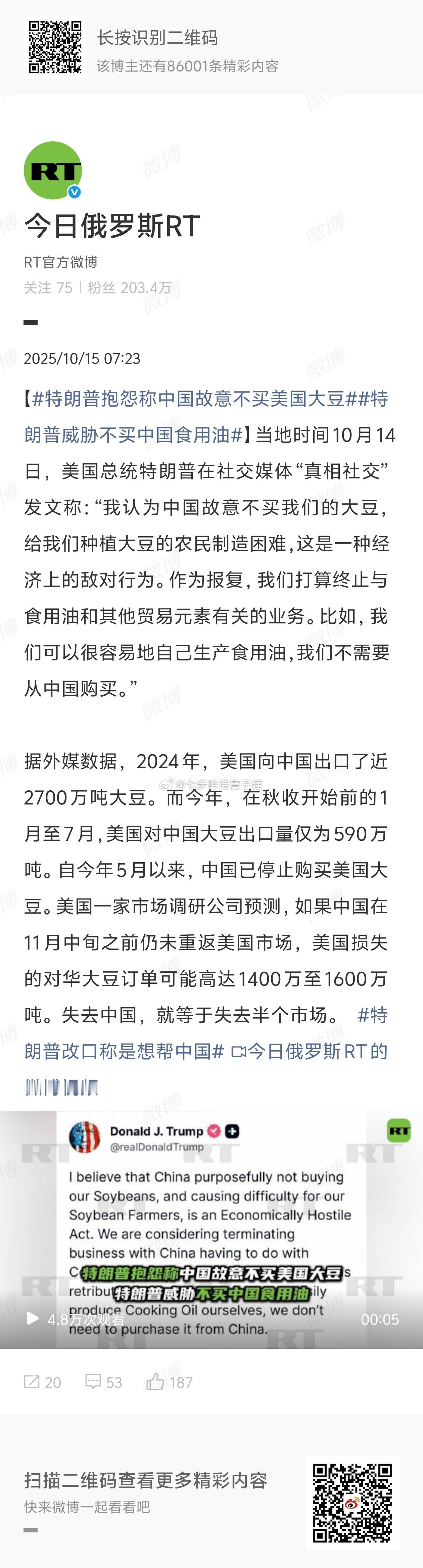 他不说,我都不知道美国向我们买食用油[笑cry]