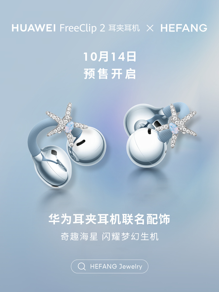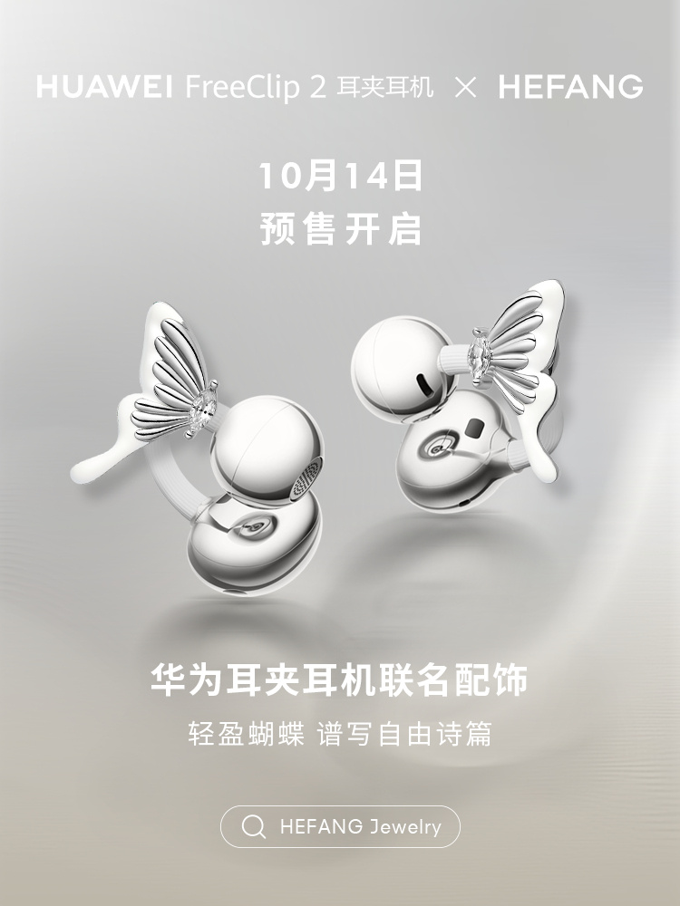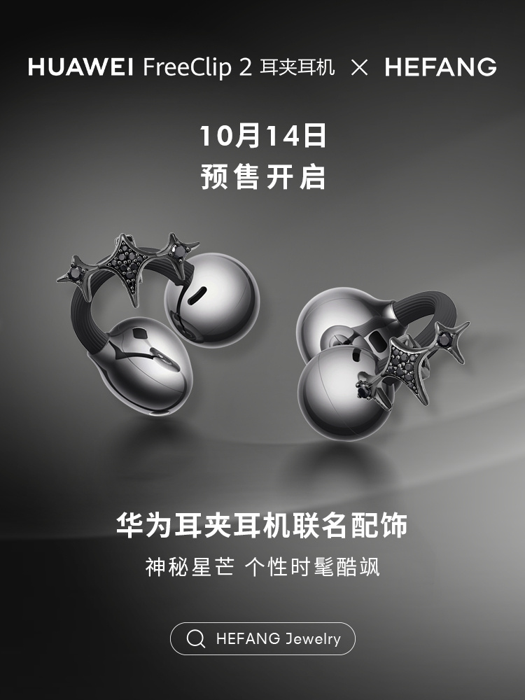 华为耳夹何方联名配饰开启预售 真的很漂亮,而且能感觉到,这又将引领一波潮流。