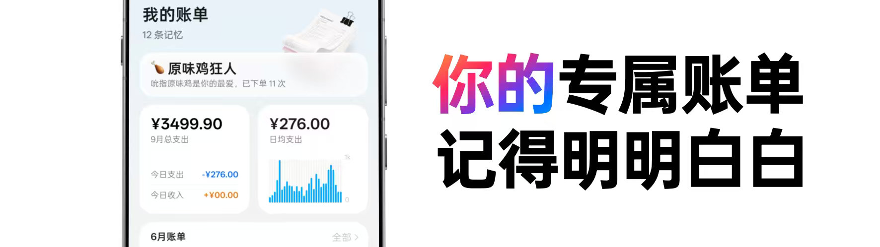 聚焦高频生活场景:点外卖,按一下即可自动识别取餐码,取餐码,云上见!想记账,按一下即可快速一键记账,月度消费,云上见!超强记忆能力,生活从此简单。