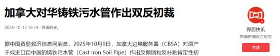 10月13日,加拿大宣布对中国铸铁污水管加征高额临时反倾销税和反补贴税,这意味着我国出口到加拿大的这类产品成本将大幅增加。 这事儿一传开,国内做铸铁污水管出口的企业立马就慌了神。 要知道,铸铁污水管一直是咱们国家出口清单里的重头戏,加拿大这突然一下的“税炸弹”,直接让出口成本往上涨了一大截,不少企业本来就不宽的利润空间,这下几乎要被挤没了。 加拿大这波“双反”到底有多伤人?看他们发的公告就知道,这两项税从10月9号就已经生效了。虽说加拿大没把具体税率明说,但看他们用“高额”俩字形容,再想想以前的情况,就知道这税低不了。 就拿2023年美国对咱们中国铸铁污水管配件的做法来说,当时反倾销税率直接飙到360.30%,反补贴税也在7.37%到133.94%之间晃悠。加拿大这次就算不照抄美国的数,估计也差不到哪儿去。 咱们拿实际情况算笔账:要是有家企业之前出口到加拿大的铸铁污水管,每吨成本5000块。要是税率按10%算,现在每吨就得多交500块的税;要是税率涨到30%,那每吨成本直接就蹦到6500块了。 这么一来,咱们中国的产品在加拿大市场上,以前靠的价格优势就全没了,不少已经谈得差不多的订单,说不定就黄了。 面对加拿大这波操作,咱们中国的企业也没等着吃亏。不少有实力的企业已经动起来了,琢磨着怎么扛过这关。 河南钢铁集团底下的永通公司就是个典型例子。2024年前10个月,他们家铸管的国际销量比去年同期涨了55%,创下这几年的最好成绩。 他们是怎么做到的?一方面,永通公司砸了不少钱在研发上,搞出了顶管、拖拉管、自锚管这些新产品,在市场上卖得挺火。 尤其是他们新研发的热力管,还把球墨铸铁管的用途拓展到了供热领域,多了条路走。另一方面,他们也没落下品牌和客户,专门请了中东、沙特那边的客户来厂里实地看,慢慢攒下了长期的合作关系。 不过,不是所有企业都有永通这样的实力。那些中小型企业面对这事,就难多了。他们可能得抱团取暖,凑成行业联盟,一起对付加拿大的贸易壁垒。 当然,政府这边也得帮把手,给这些企业来点政策优惠,或者资金支持,别让他们独自扛压力。 加拿大这么干,咱们中国政府肯定不能看着不管。现在虽然还没针对铸铁污水管出台直接的反制措施,但看以前的情况,政府一般会从这几个方向入手,护着咱们的企业。 首先,政府可能会找世界贸易组织(WTO)说理,说加拿大这做法违反了WTO的规矩。虽说WTO的争端解决不是万能的,但至少能给咱们企业争取点时间,喘口气。 紧接着,政府也可能对加拿大的某些产品下手,比如搞反倾销或者反补贴调查。 就像2024年,咱们国家就对加拿大的油菜籽启动了反倾销立案调查。这种对等的做法,往往能让加拿大政府重视起来,重新想想自己的贸易政策合不合理。 除此之外,政府还可能通过外交渠道跟加拿大沟通,让他们取消这种不合理的贸易壁垒。虽说这种方式不像法律手段那么直接,但有时候也能起作用。 加拿大对咱们中国铸铁污水管加税,可不光是中加两国之间的事,搞不好会影响到全球市场。从短期来看,咱们中国的铸铁污水管在加拿大市场的份额,可能会被其他国家抢了去。 像印度、泰国这些国家的产品,说不定会借着价格优势,赶紧占了加拿大的市场。 从长期看,这场贸易摩擦可能会让全球铸铁污水管市场的格局变样。有些企业可能会把生产厂搬到别的国家,躲开贸易壁垒。 这不仅会影响咱们国家的出口,还可能打乱全球产业链的稳定,让整个行业都跟着受影响。 更麻烦的是,要是加拿大这做法没人管,其他国家可能会跟着学,也对咱们中国产品搞贸易保护,到时候全球贸易环境就更差了。 那接下来该怎么走?面对加拿大的贸易壁垒,咱们中国的企业和政府都得沉住气,拿出实在的办法。对企业来说,得想办法提高自己的竞争力,多花心思搞研发、做品牌,再开拓点新市场。 同时,也得盯着国际市场的变化,及时调整自己的销售策略,别等着被市场淘汰。 对政府来说,得多支持、多引导企业,把贸易救济的机制弄完善点,实实在在护着企业的合法权益。 另外,也得跟其他国家多沟通、多合作,推动建一个公平、公正、开放的全球贸易体系,别让贸易保护主义抬头。 其实这场贸易摩擦,对咱们中国企业来说,既是挑战也是机会。只要能抓住这个机会,好好升级转型,提高自己的实力,肯定能在国际市场上站稳脚,走得更长远。