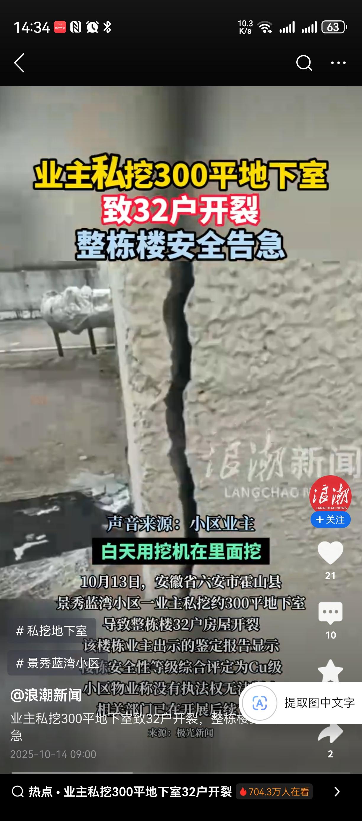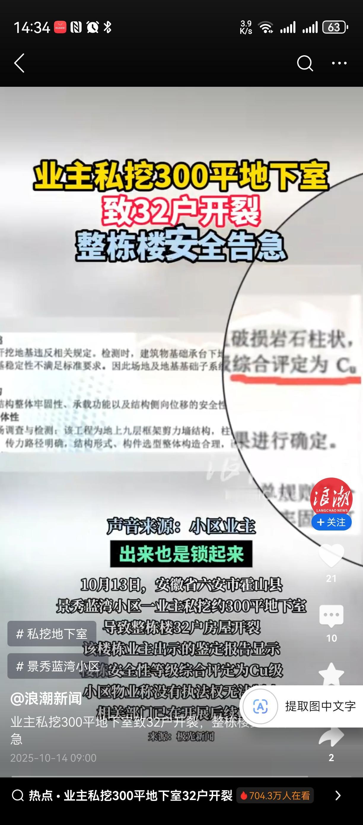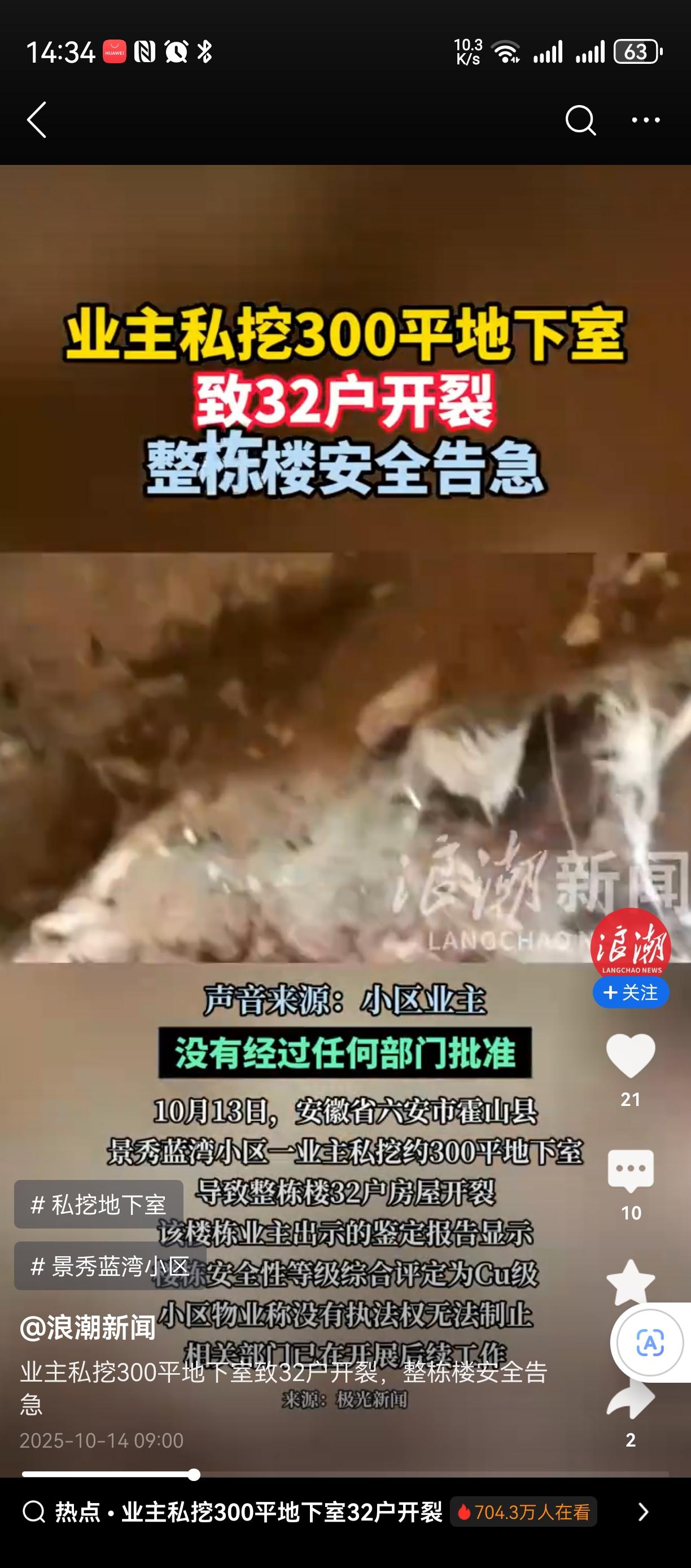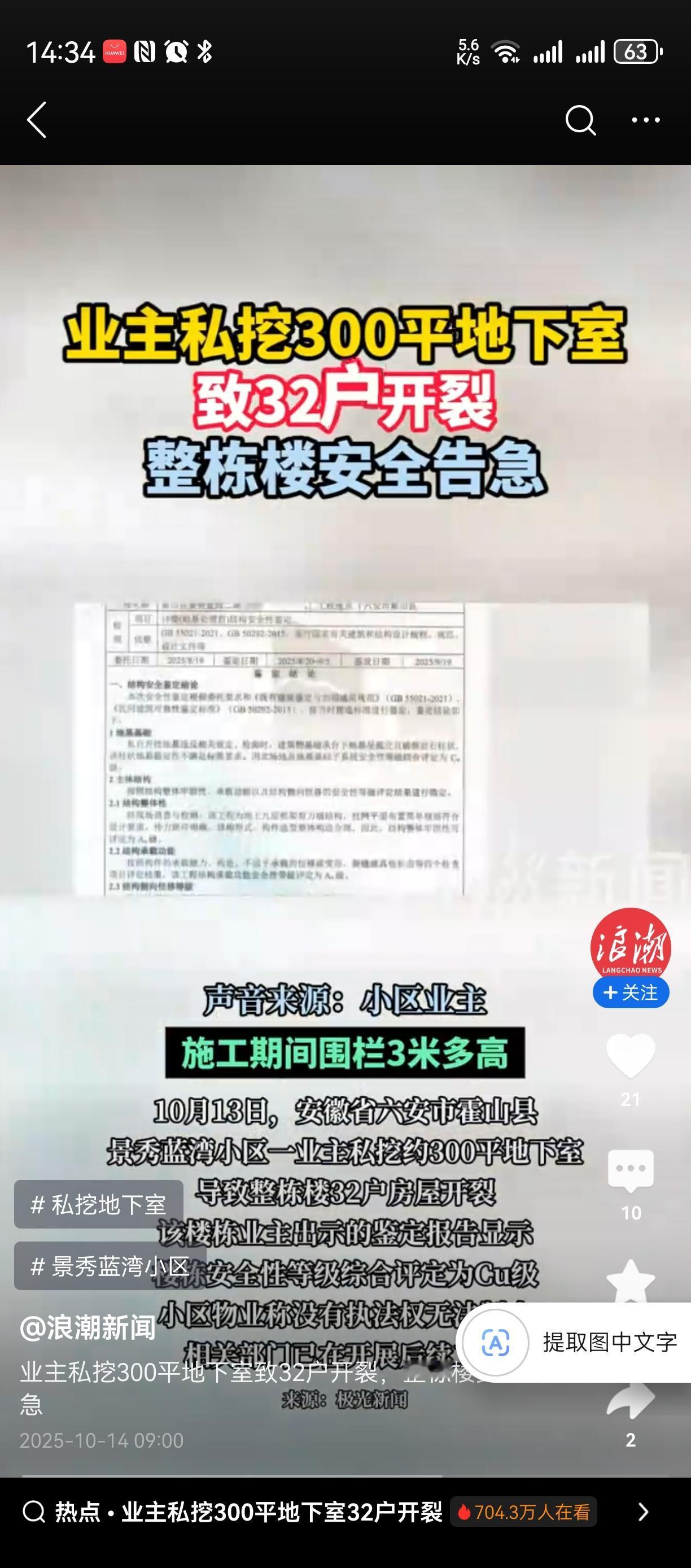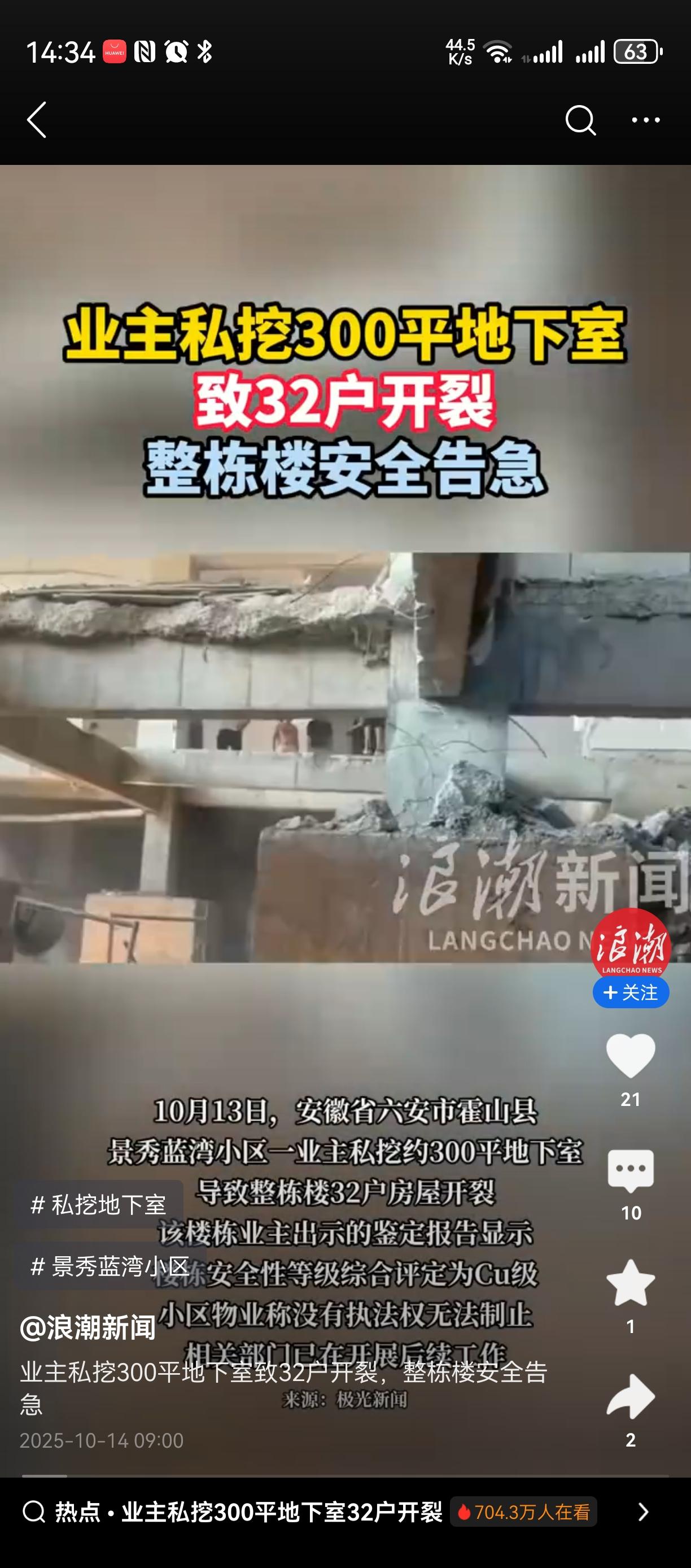 挖洞🕳挖出了大事! 这个一楼业主, 疯狂的挖呀挖, 居然把整栋楼都挖空了。。。