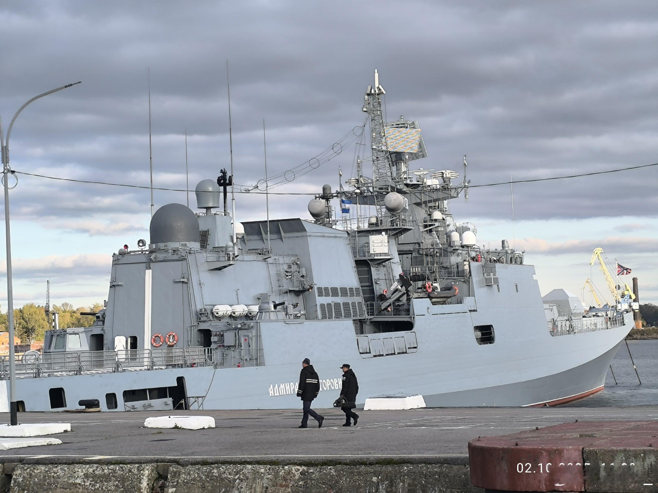 俄黑海舰队494“格里戈洛维奇海军上将”号护卫舰停泊在喀琅施塔得临时驻地。
