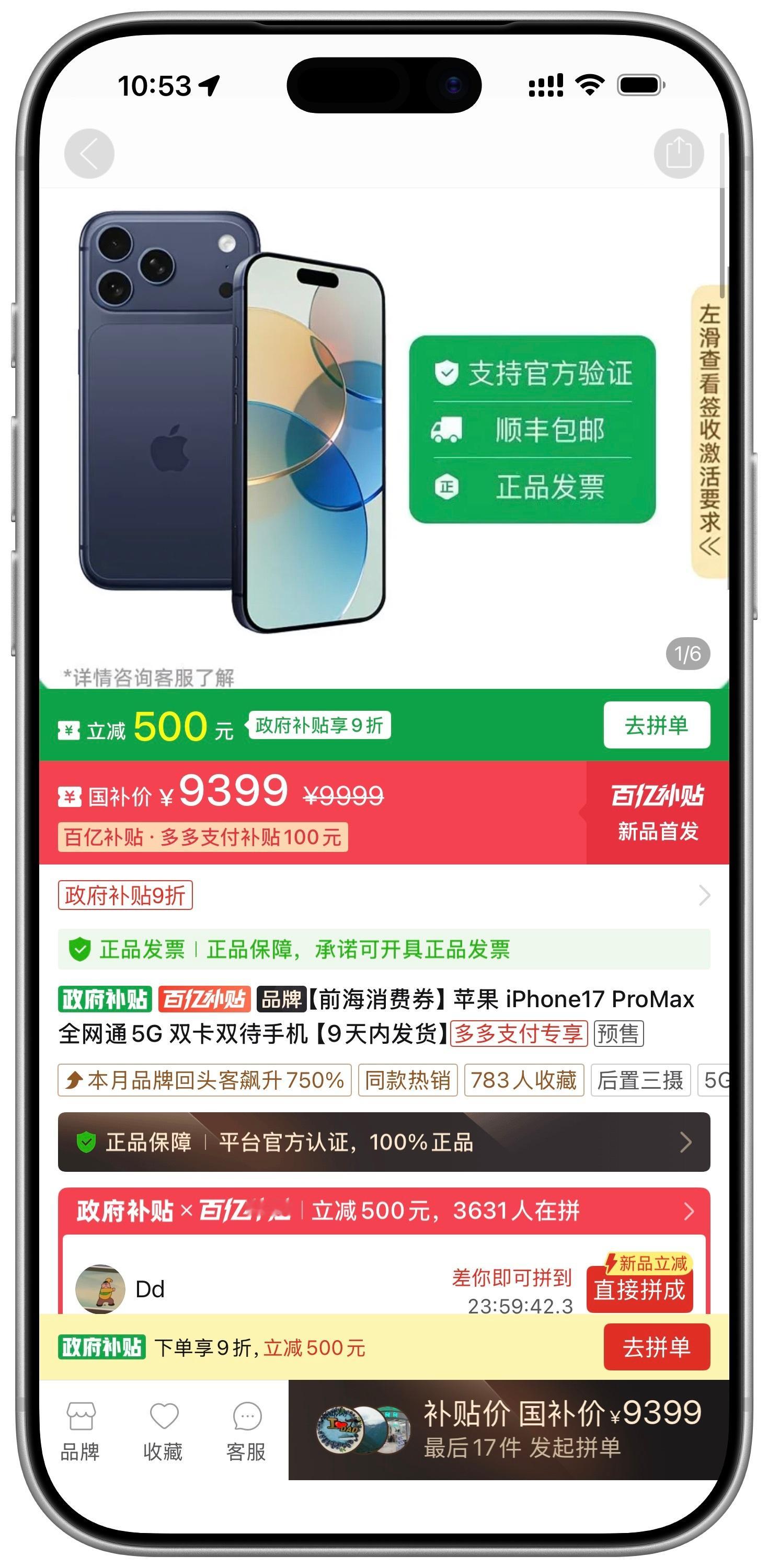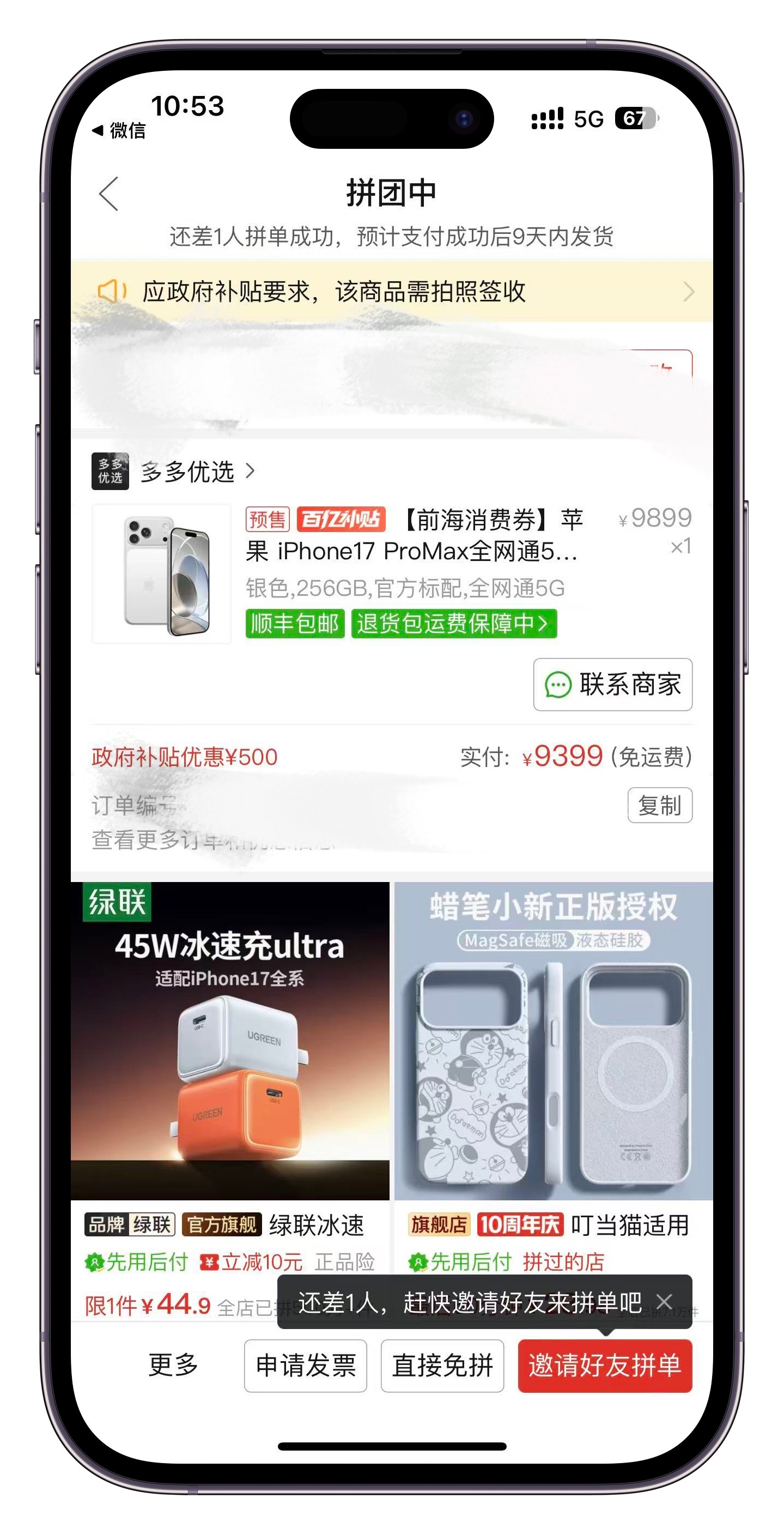 并夕夕 iPhone 17 Pro Max 政府补贴不用抢券9399了。[流鼻血]