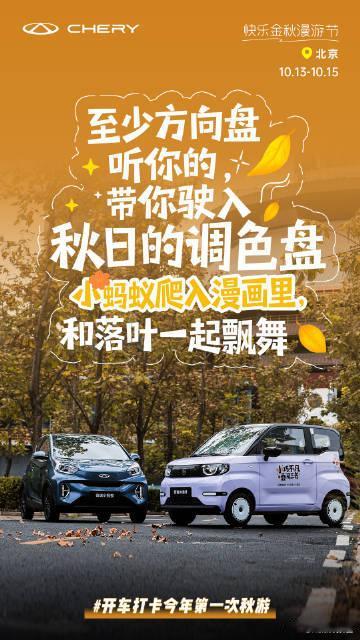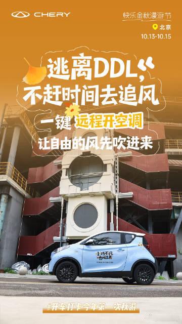 快乐金秋漫游节,奇瑞小车双子星打卡北京!速速逃离班味,冲入憧憬的自由空间,您的秋游好搭子,邀您加入这一场秋天的邂逅!