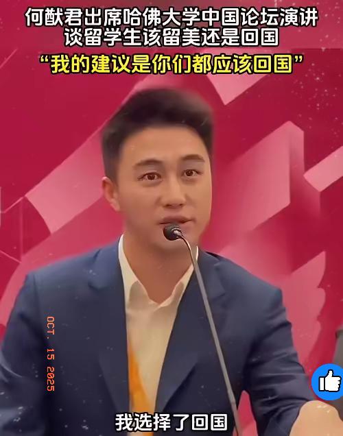 美国的关税打压之时,中国出现了一位厉害人物!他就是29岁的香港青年,赌王之子何猷君,在哈佛大学演讲时,他对着台下中国留学生撂下一句大实话:我建议你们都该回国。 当时正值中美贸易摩擦,美国针对中国科技、制造业加征关税,国内不少行业承受着压力。 别以为他是出身优渥站着说话不腰疼,这位哈佛经济计算机双学位学霸,可是真的放弃了远超同龄人的起薪,转头扎进国内的创业浪潮里。他最清醒的一点是:在美国做得再好,也只是按别人的流程走,而国内的AI、新能源、半导体全是从零到一的机会,这才是真正能让才华落地的舞台! 要知道,当时美国对着中国科技围追堵截,恰恰催热了国内核心技术的风口,芯片研发、小微数字化这些领域,缺的就是留学生手里的真本事。比起在国外挤破头抢岗位,回国踩中政策红利和产业上升期,才是最聪明的选择,毕竟靠自己闯出来的价值,可比“家族光环”靠谱多了! 现在再看,那些当年跟着风口回国的留学生,早就成了行业里的中坚力量。如果是你,手握硅谷offer和国内的时代风口,会怎么选?评论区聊聊你的看法!