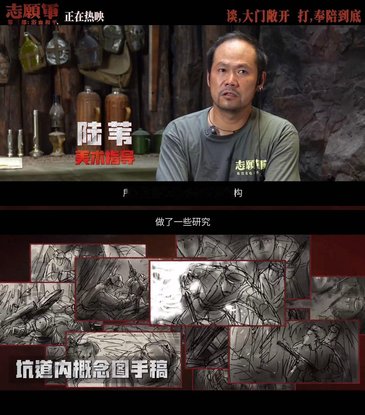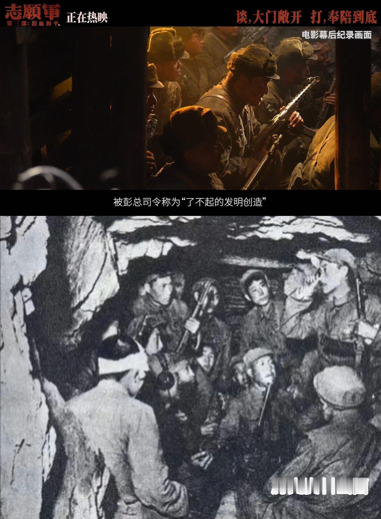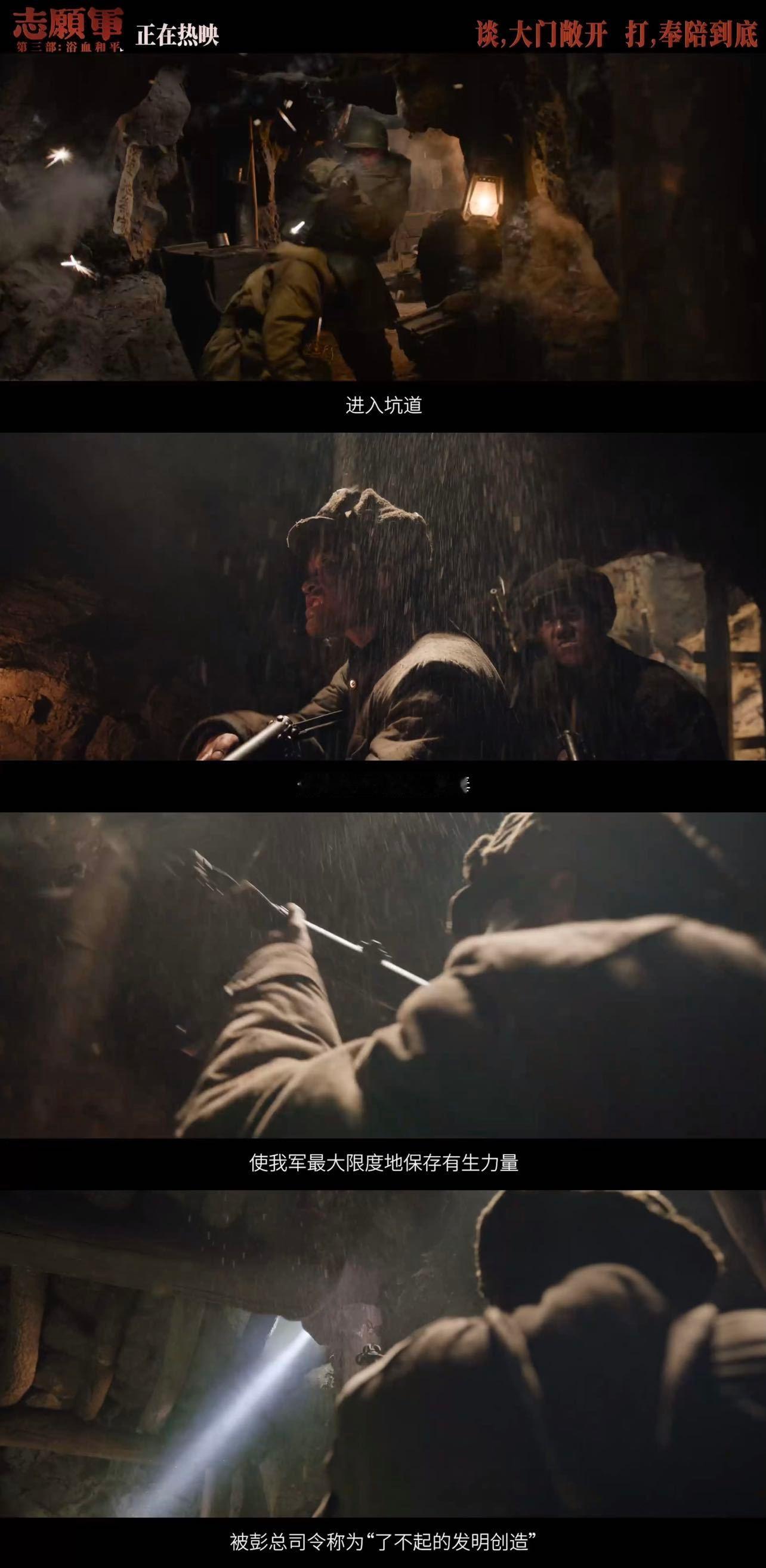 上甘岭坑道战凸显志愿军作战智慧志愿军一锹一铲凿出地下长城 《志愿军:浴血和平》最新发布的特辑里展现了上甘岭坑道战的拍摄过程,被电影制作的用心程度和当年战士们的作战智慧深深震撼到。这是70多年前志愿军战士们为了更好地抵抗敌人强攻、赢得作战胜利而想出的妙计,用坑道抵御敌军的炮弹、空/袭、毒/气,在敌我装备相差悬殊的情形下,将他们的炮火杀伤力降到最低,让我军如虎添翼,赢回战场主动权。当看到特辑中的坑道战概念图时,再一次被电影的专业度和真诚的态度感动到,这份手稿和当年志愿军构筑坑道工事的真实资料图对比起来,能看出真的是有在认真还原的,那一刻真的感觉影像可以跨越时空,让我们见到当年战士们为和平奋战的身影。如今山河无恙,英雄的名字我们也永远不忘。电影二刷走起!