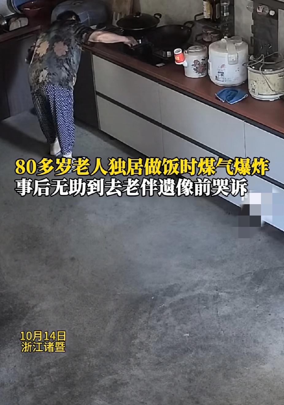 看哭了!10月14日,80多岁老人在家做饭时煤气爆炸,事后无助跑到老伴遗像前哭诉