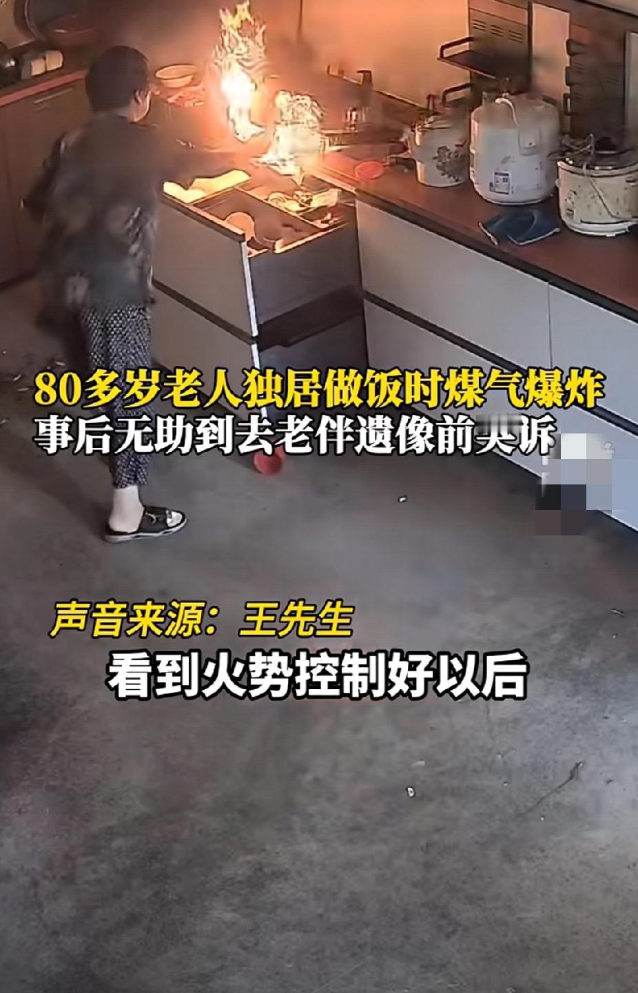 看哭了!10月14日,80多岁老人在家做饭时煤气爆炸,事后无助跑到老伴遗像前哭诉! 当事人的外孙王先生描述:当天外婆做饭时打开阀门的一瞬间便发生了爆炸,将锅具和碗柜都震得变了形,外婆也被震出一米开外,随即整个灶台冒出熊熊大火!外婆赶紧从地上爬起来,拿起锅拍打灶台尝试灭火,胡乱操作一番后才想起来关闭总阀门!火势控制好后,外婆独自在凳子上坐了一会,然后站起来走到外公的遗像前,抚摸着外公的遗像哭了! 王先生说:“外公在世时,外婆就是个什么都不用操心的小公主。外公去世后,外婆一个人生活,面对突如其来的事故,外婆根本不知如何应对。” 被宠了一辈子的小公主,面对生活突如其来的事故,内心一定非常的慌乱和无助。但那个保护了她一生的人,即便离开了这个世界,也是她最大的心理依靠和精神支柱! 希望小公主余下的日子能够平安,能够健康,能够安然!燃气闪爆事故 浙江