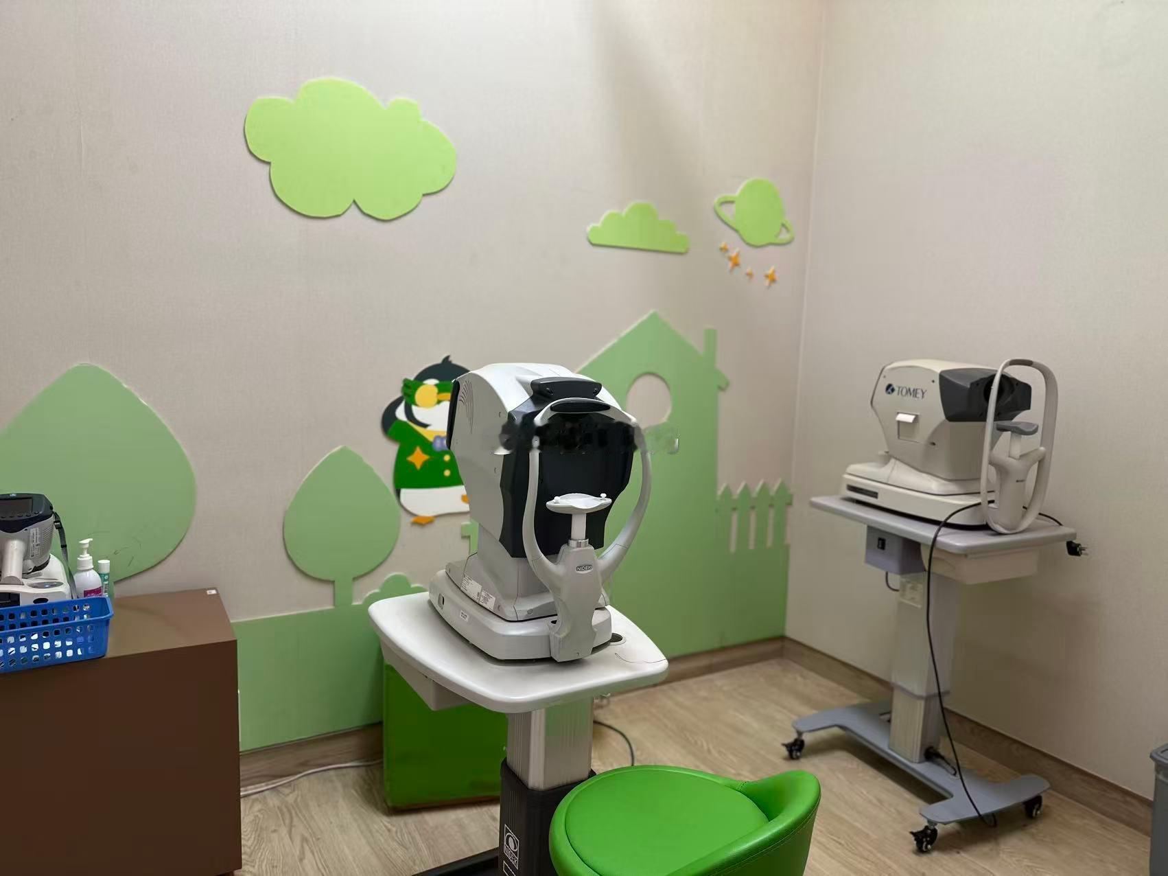 到处都有企鹅的logo和卡通形象!等候区有玩具角,小企鹅玩偶、积木、乐高、绘本一应俱全,连检查仪器都打扮得萌萌的,绝对的人类幼崽友好型设计啊!想起我和大叔当年生拉硬拽娃去看眼科,都是泪啊!要是诊所长这样,娃看眼睛还用连哄带骗?