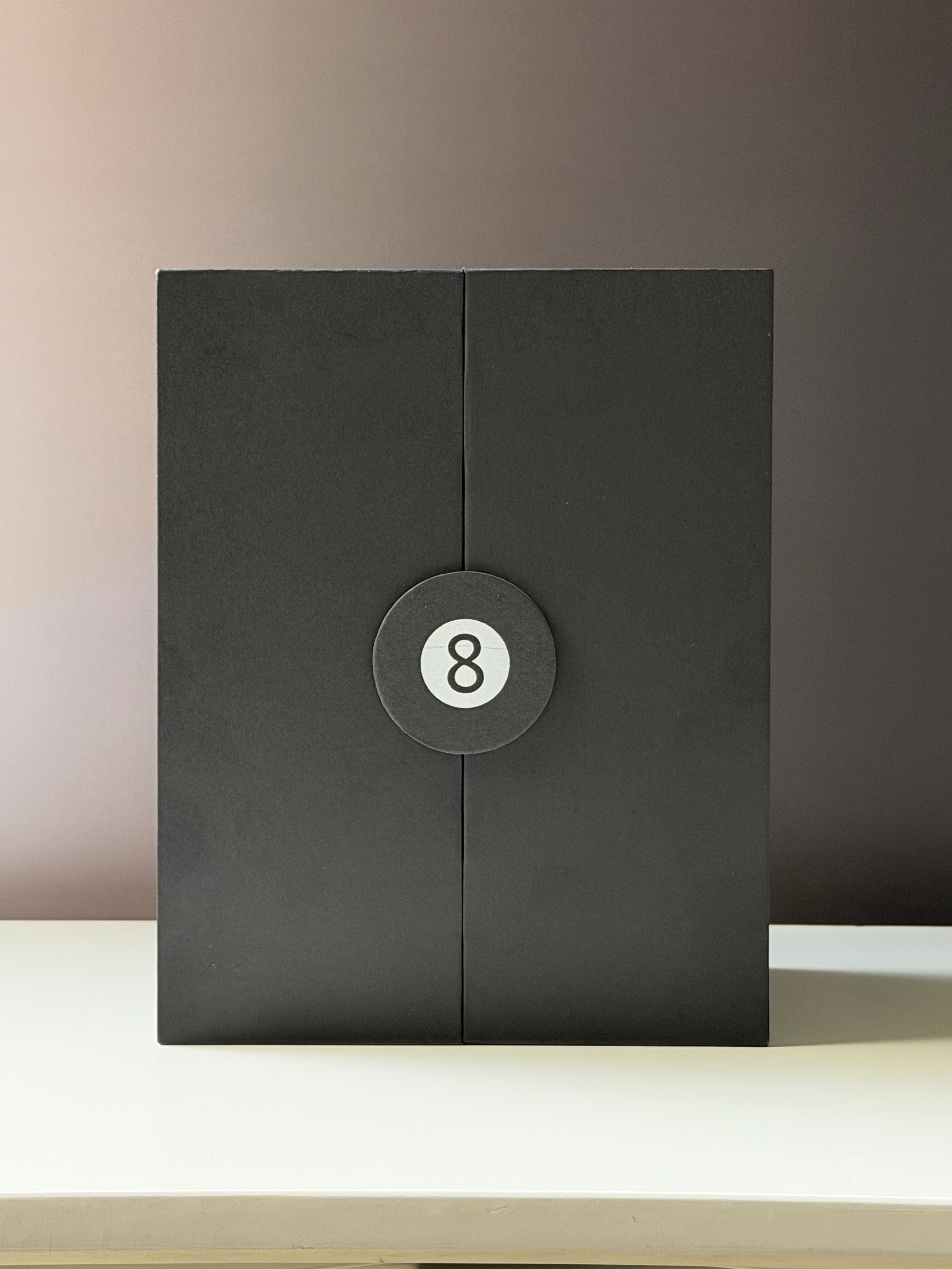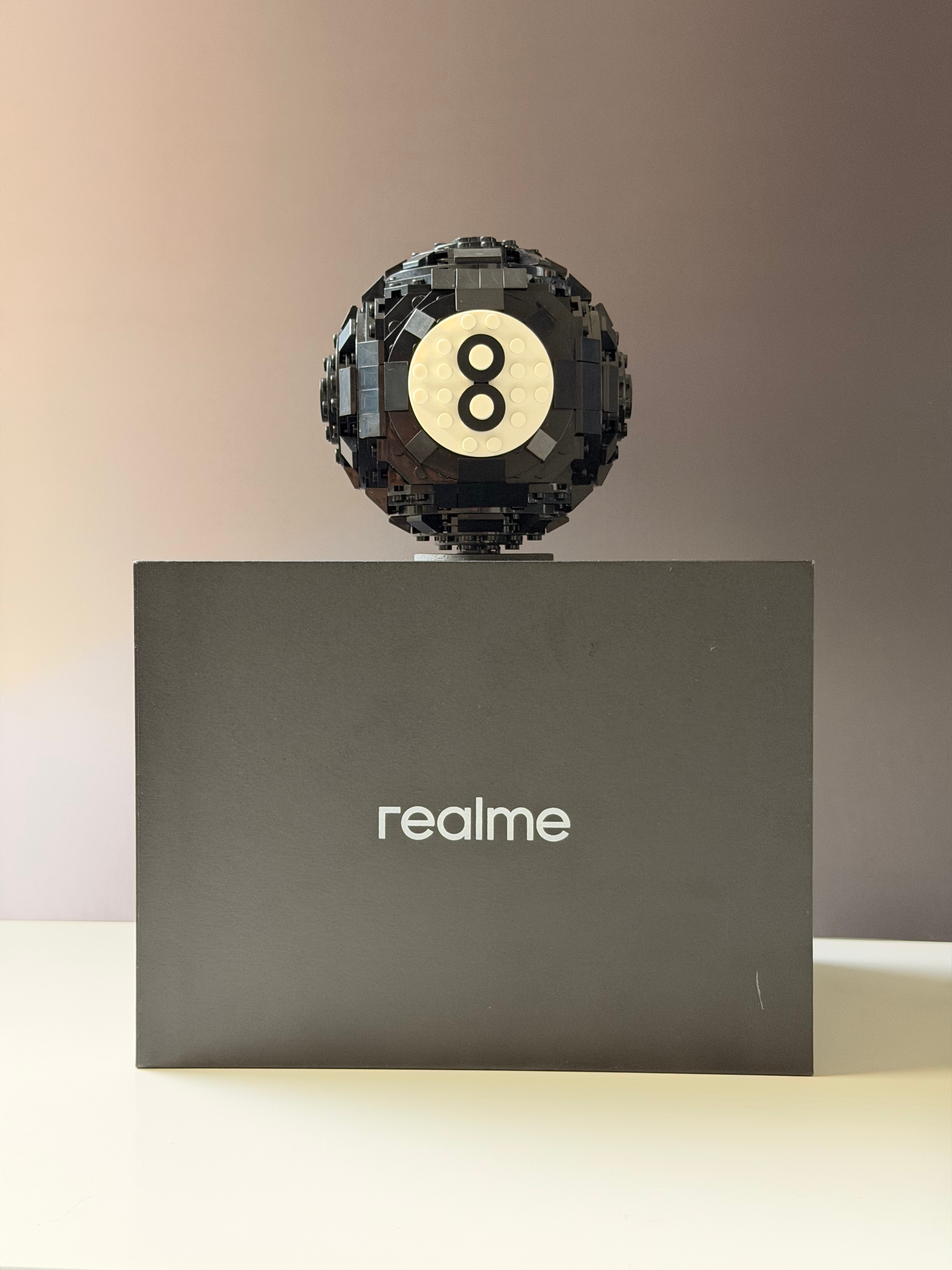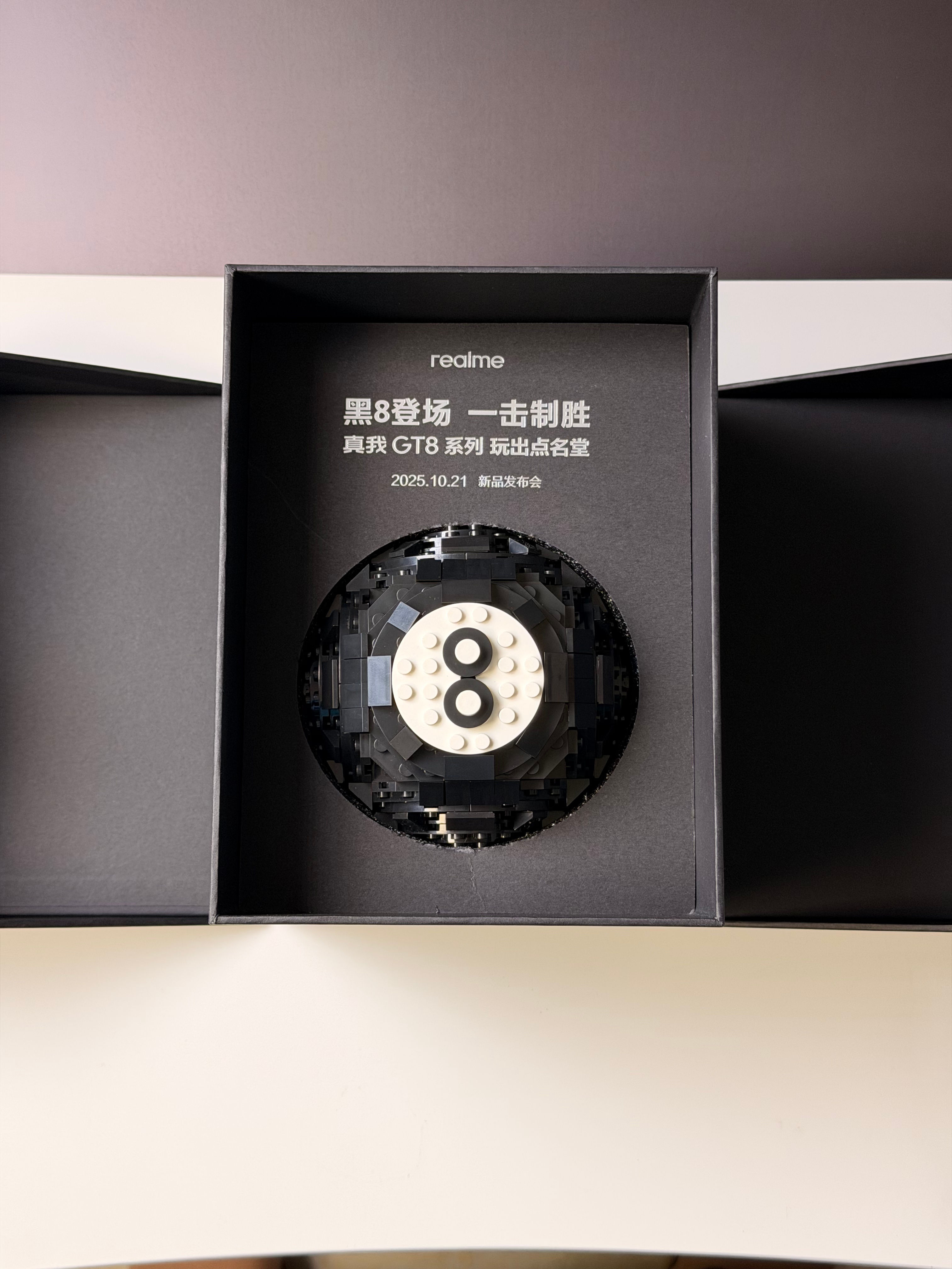 前几天收到了邀请函,好大一盒子,里边是一颗球,黑8寓意很明显了,真我这次要终结比赛。