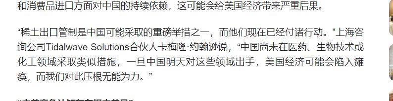 美国商界人士卡梅隆·约翰逊发出警告:一旦我国对医药、对生物技术、对化工产品出口进
